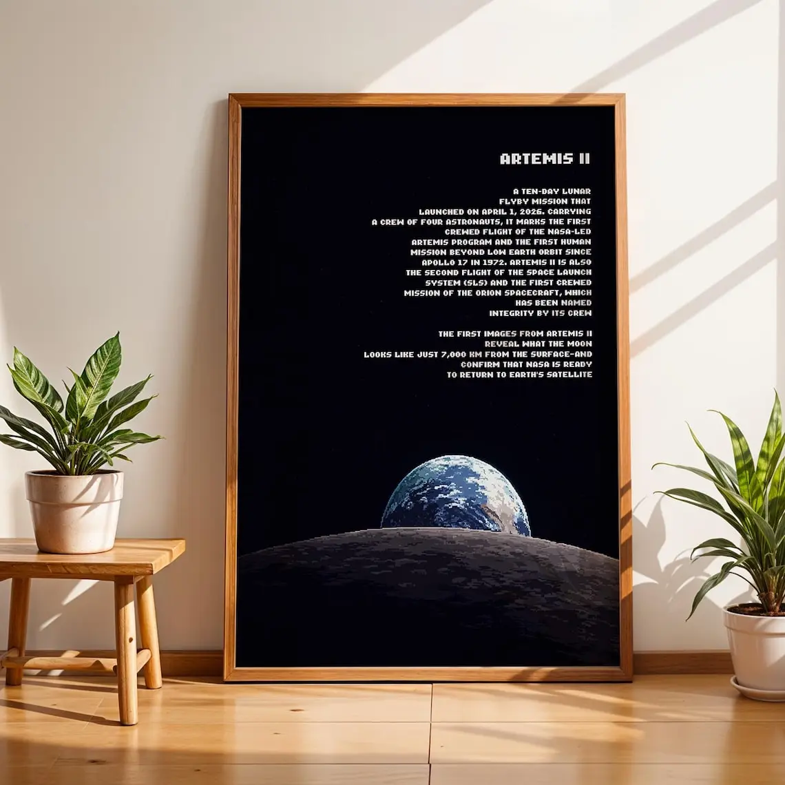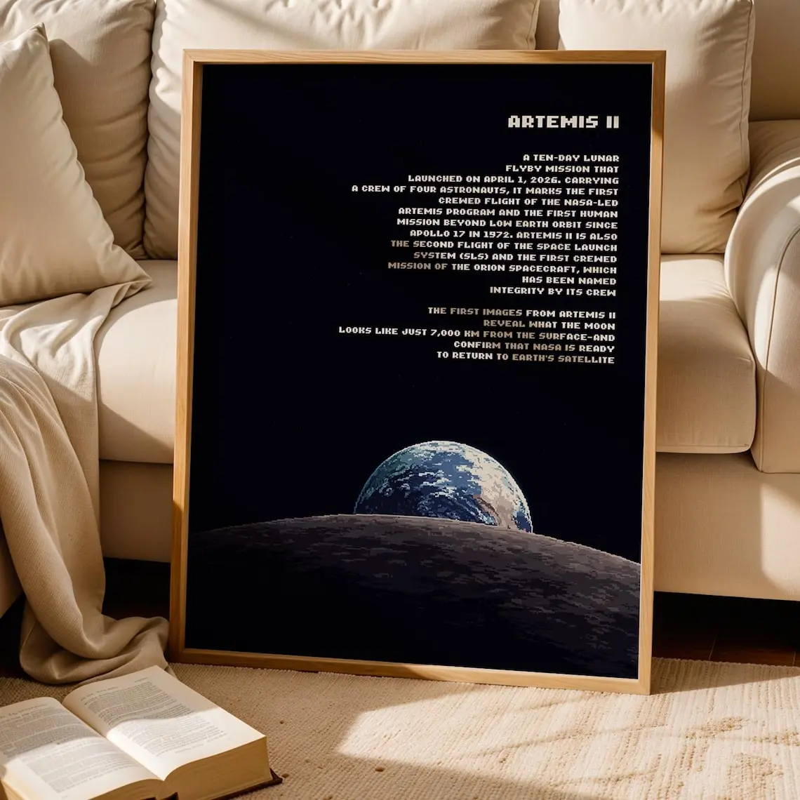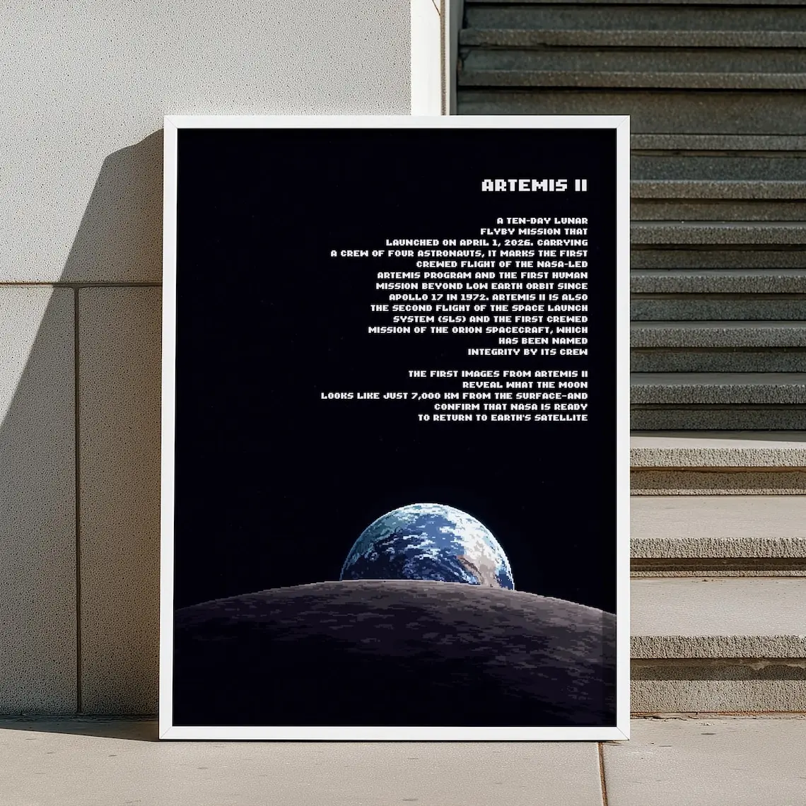 Artemis II Poster NASA Moon Mission Pixel Art Print Earthrise Space Wall Art Artemis 2 Lunar Mission