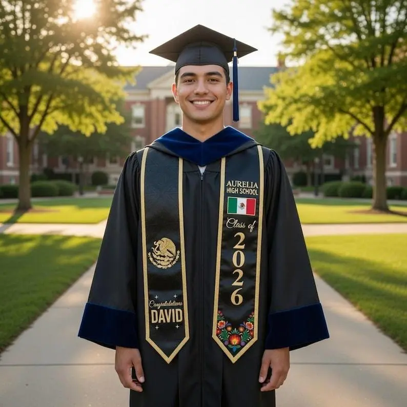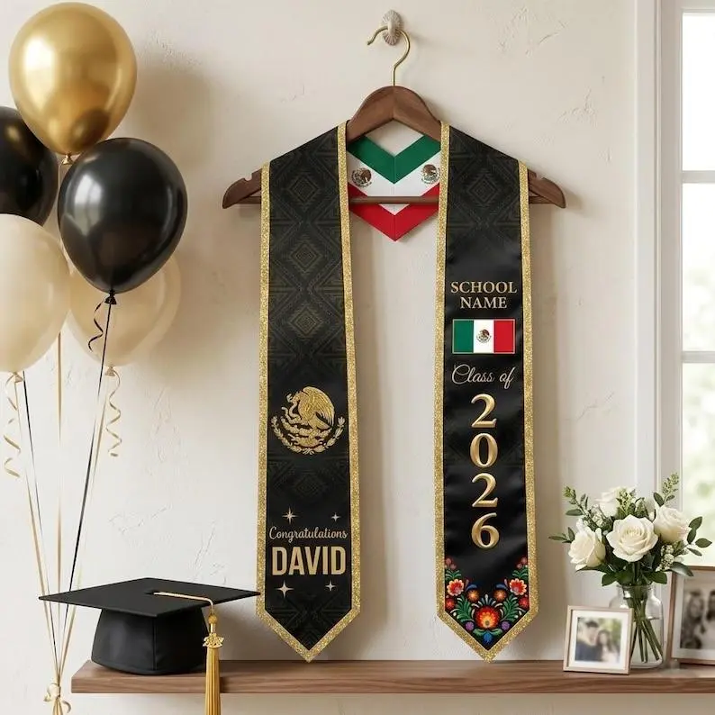 Mexican Flag Graduation Sash 2026, Custom Mexican American Graduation Sash, Mexican Stole, Mexican Student Stole 2026, Graduation Gift