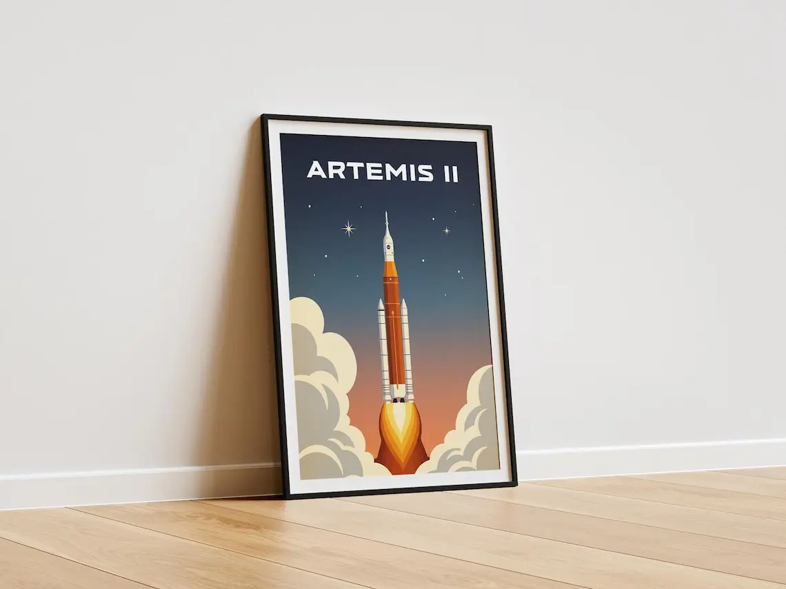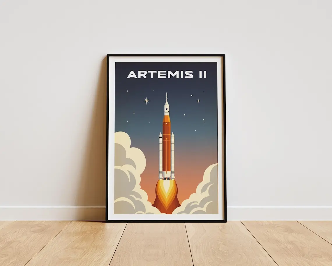 Artemis II Vintage Illustration Poster, NASA Artemis ii Wall Art, Vintage Space Travel Print, Rocket Illustration Decor, Space Fan Gift