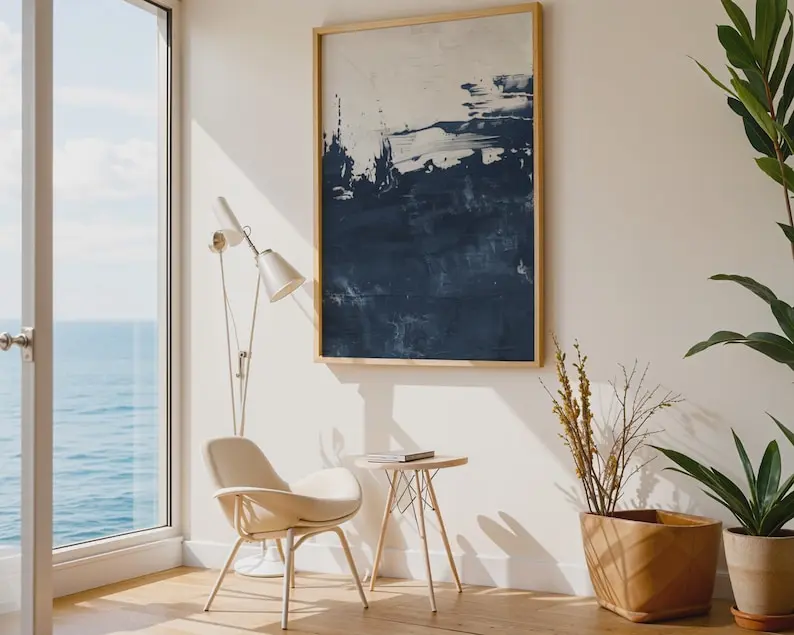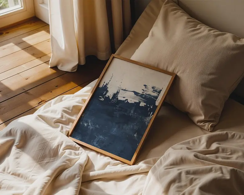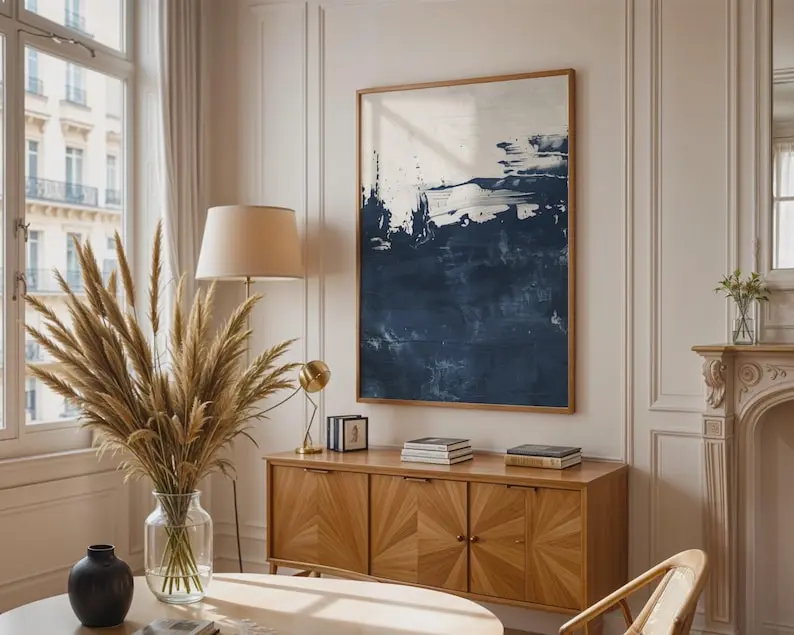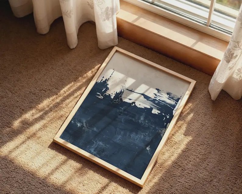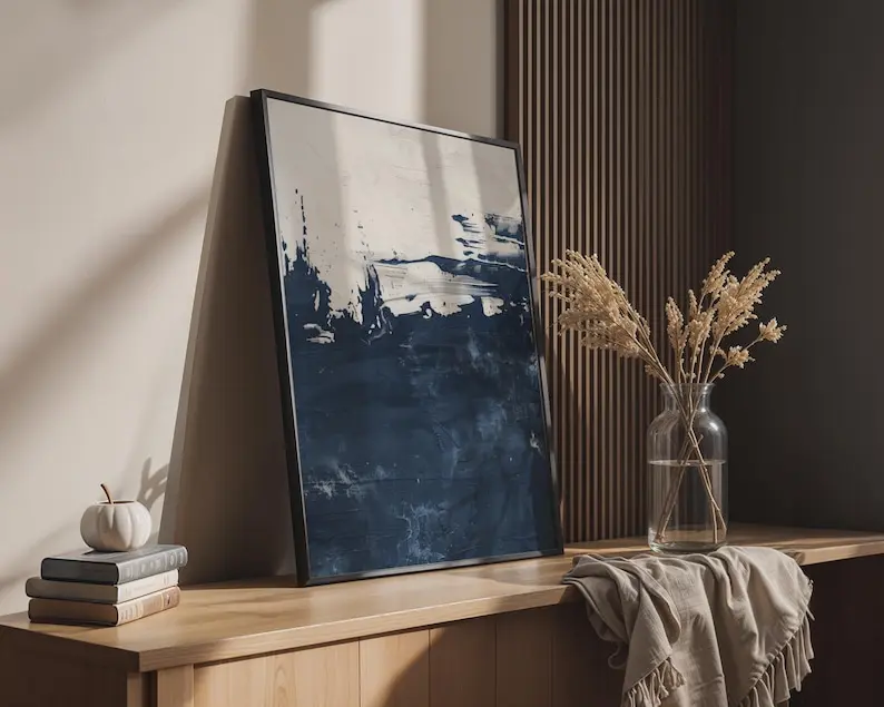 5. Navy Blue Textured Abstract Print Poster, Modern Minimalist Wall Decor