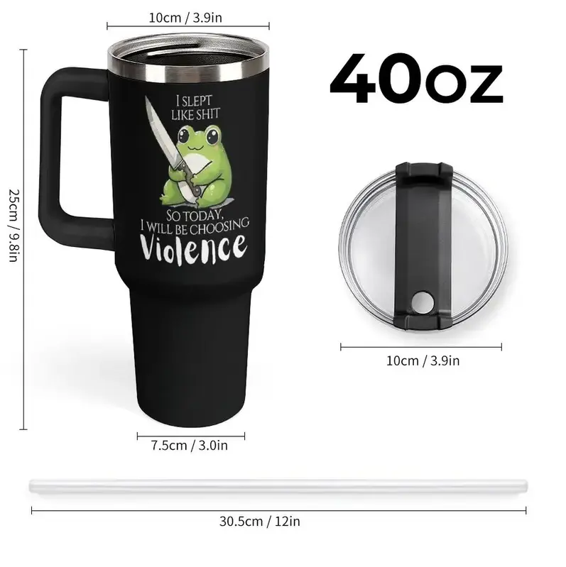 Kawaii Rude Frog Insulated Tumbler 40oz – Large Capacity Car Cup, Long Lasting Heat & Cold, Funny Knife Graphic, Sarcastic Trendy Travel Mug