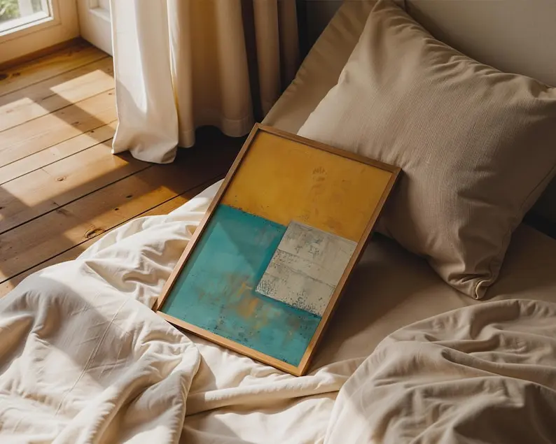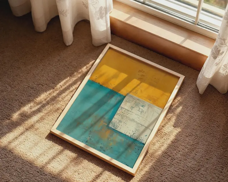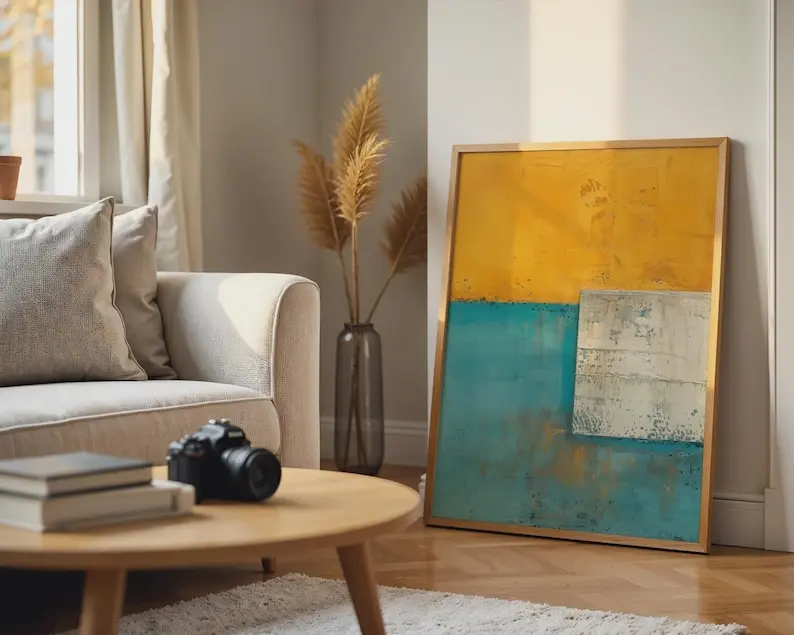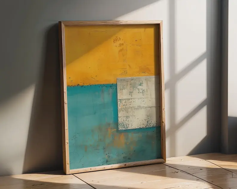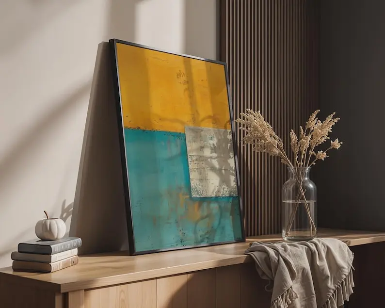 5. Abstract Geometric Print Wall Art, Mustard Yellow Teal Blue, Modern Color Block Decor