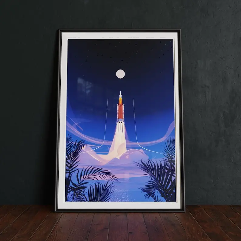 5. Artemis II NASA Rocket Poster Print Scientific Illustration Original