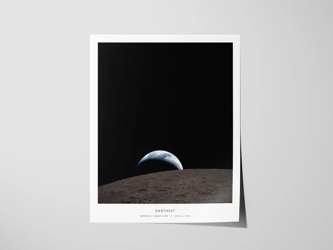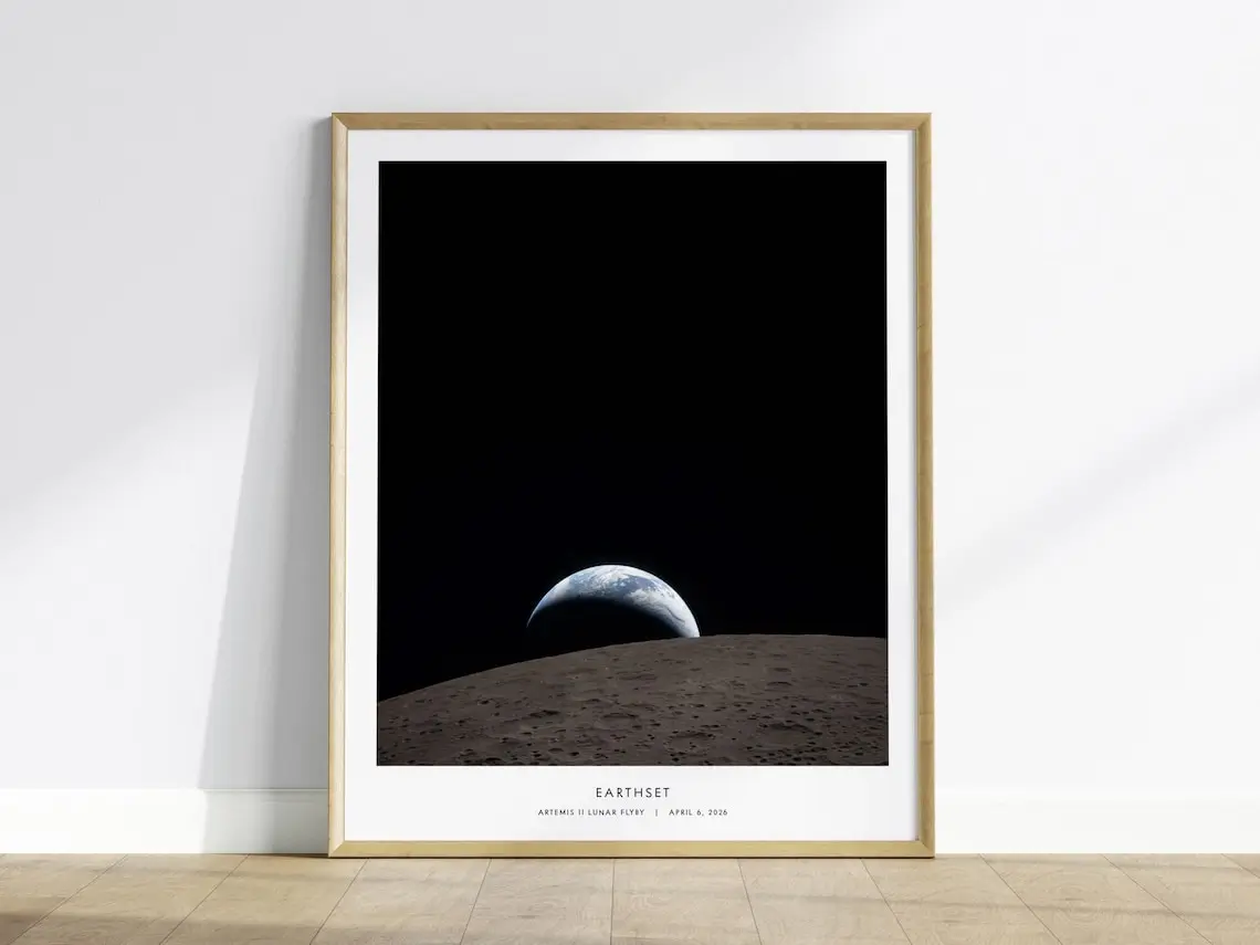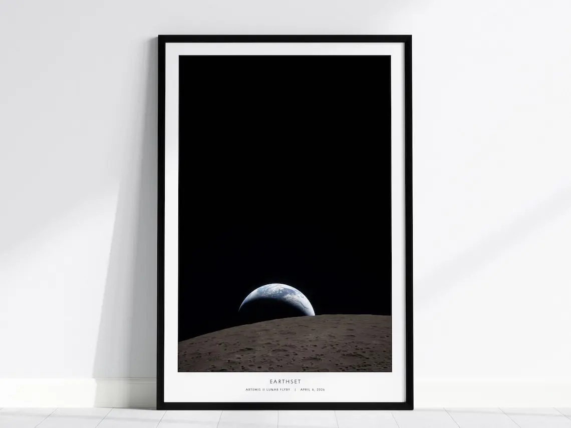 5. Earthset NASA Poster, Artemis II Lunar Flyby, Ohm Crater Print, Space Art, NASA Gift, Lunar Photography, Framed Print