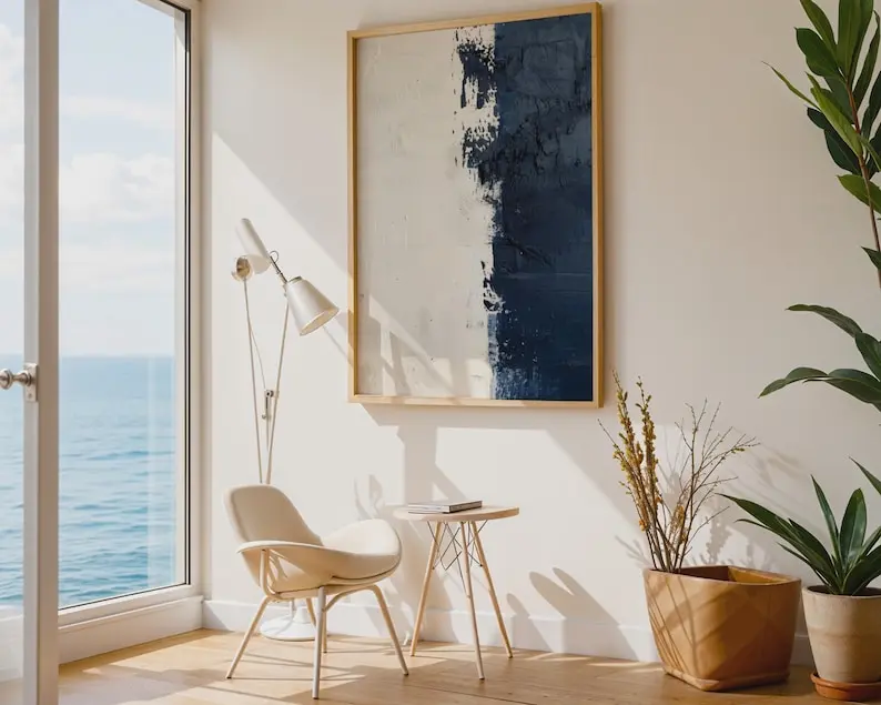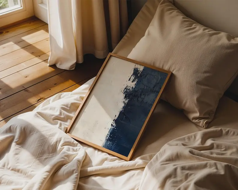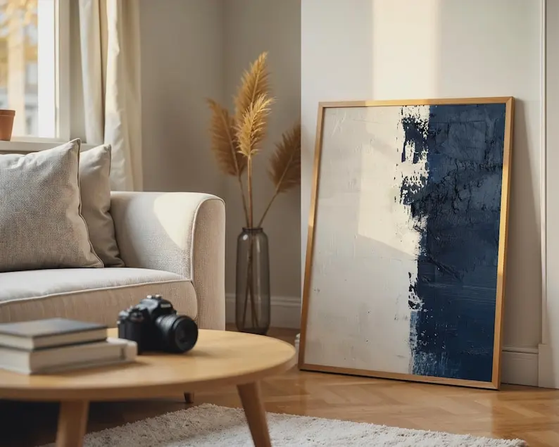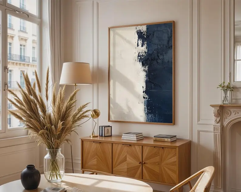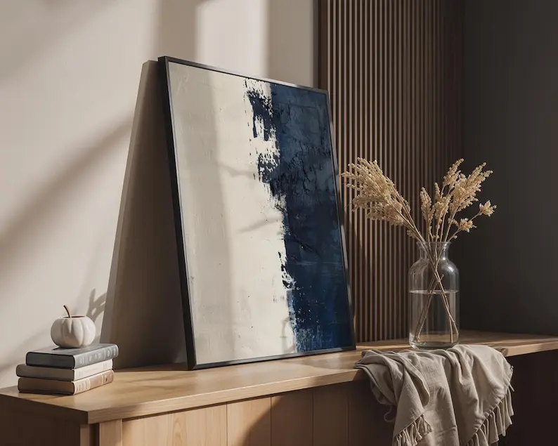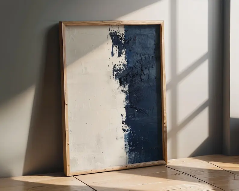 5. Textured Navy Blue Abstract Print Wall Art, Home Decor