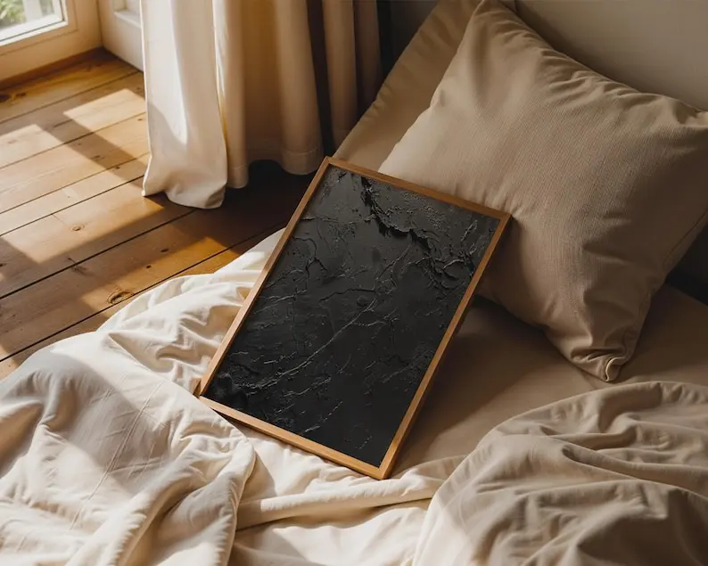 5. Abstract Black Wall Art, Textured Modern Print, Monochrome Dark Gray Decor for Living Room