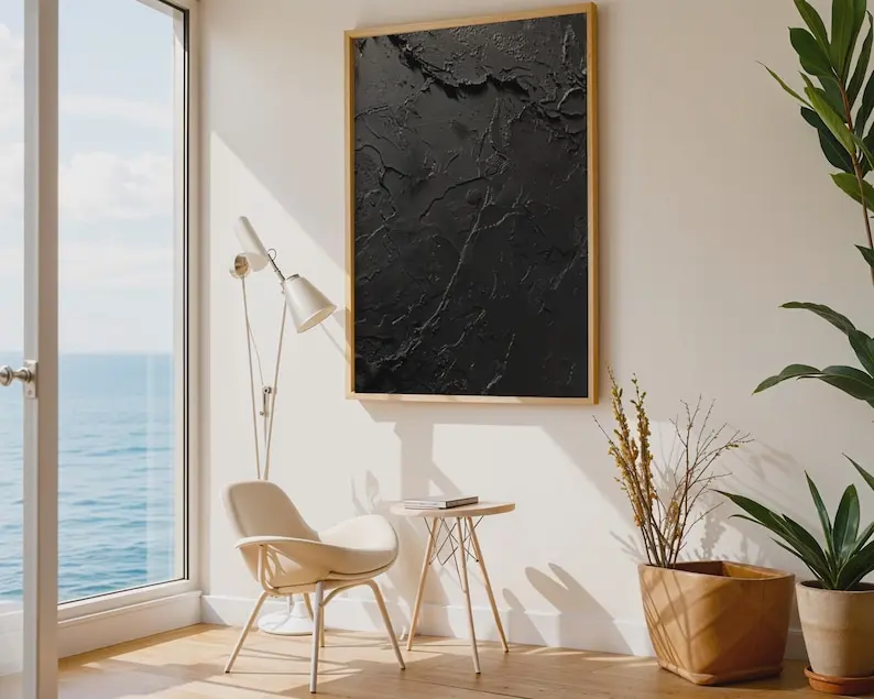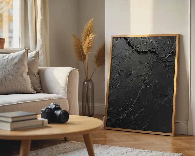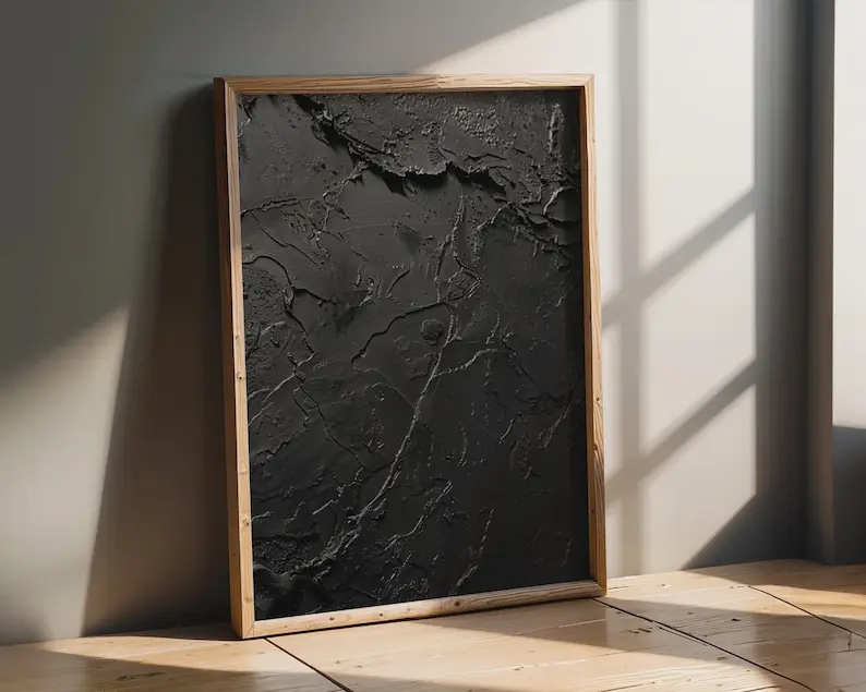 Abstract Black Wall Art, Textured Modern Print, Monochrome Dark Gray Decor for Living Room