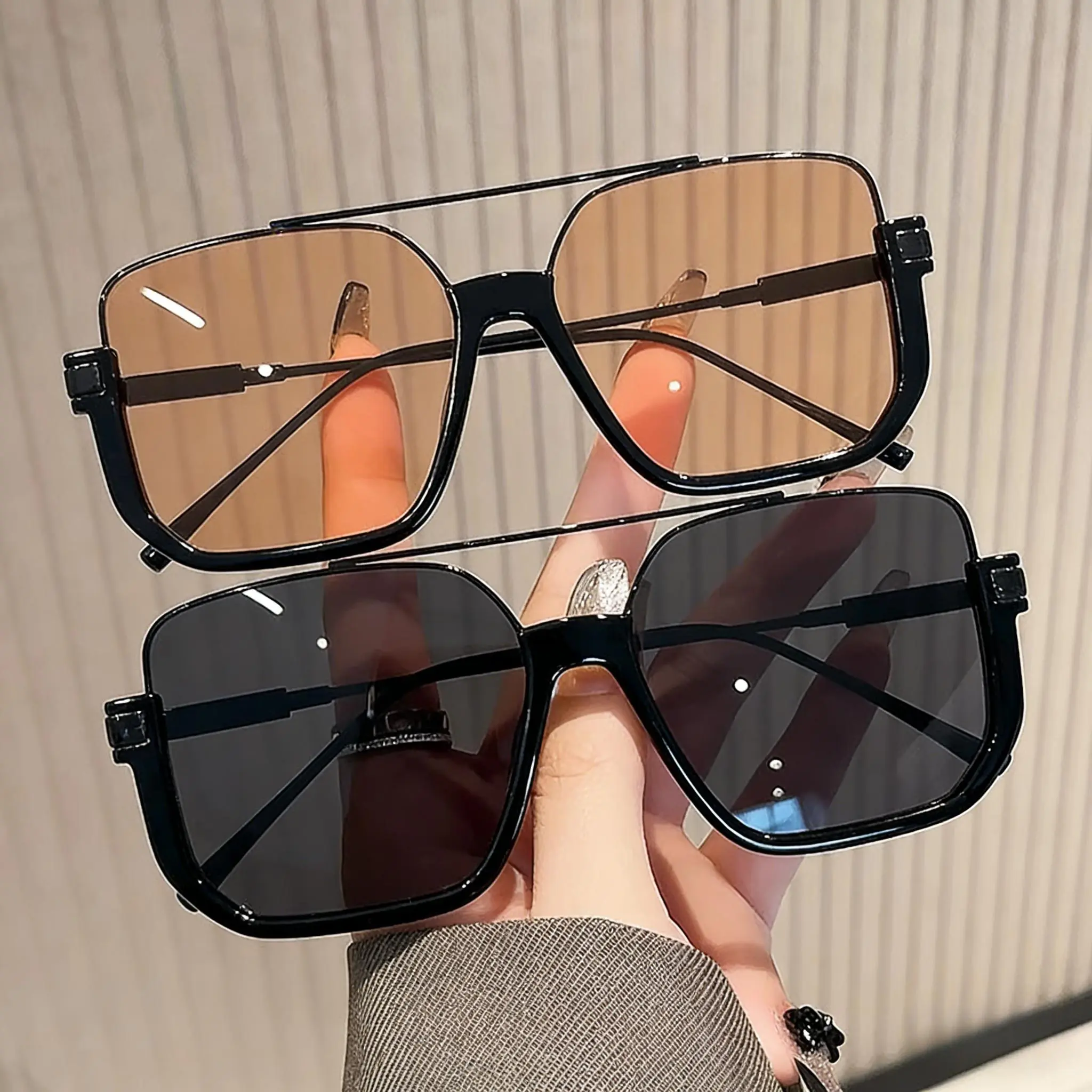 2-Pack Oversized Square Double Bridge Sunglasses, Fashion Y2K American Retro Versatile Casual Sun Glasses, UV Protection Aviator Shades