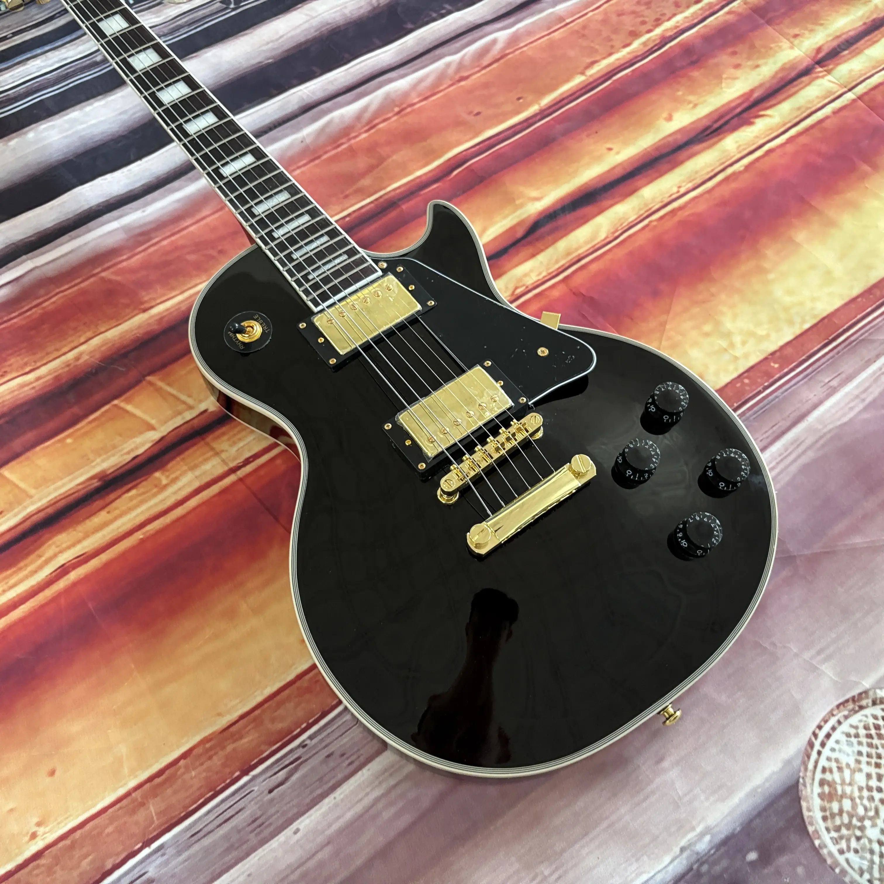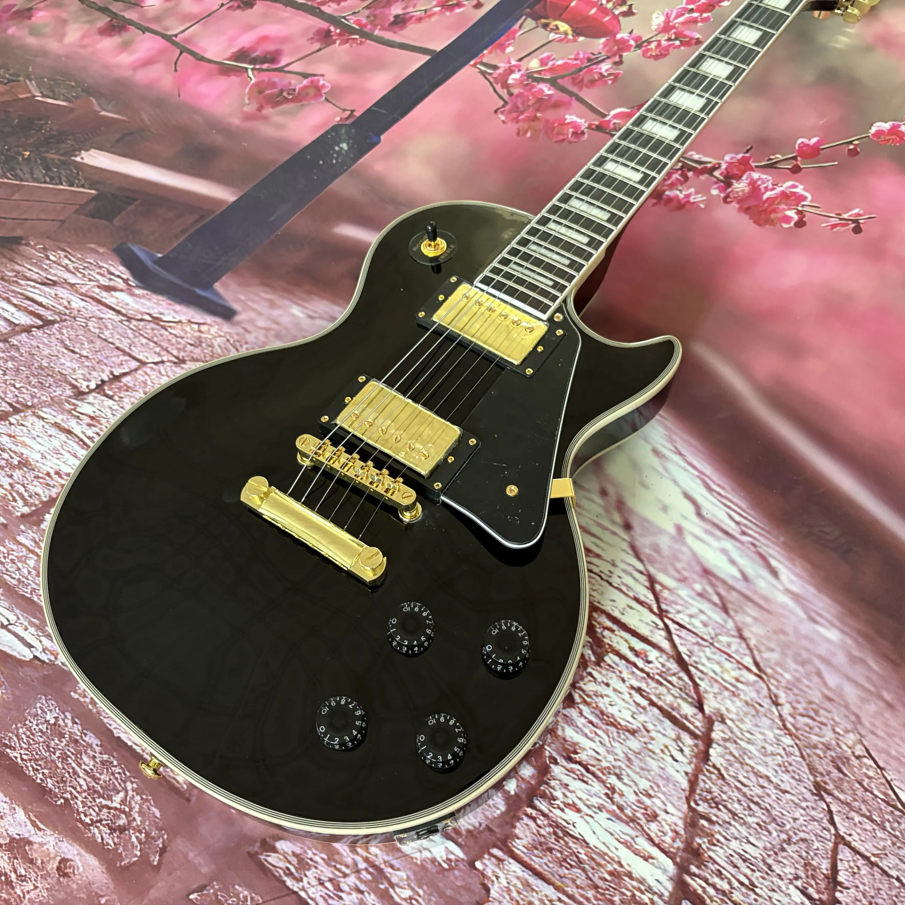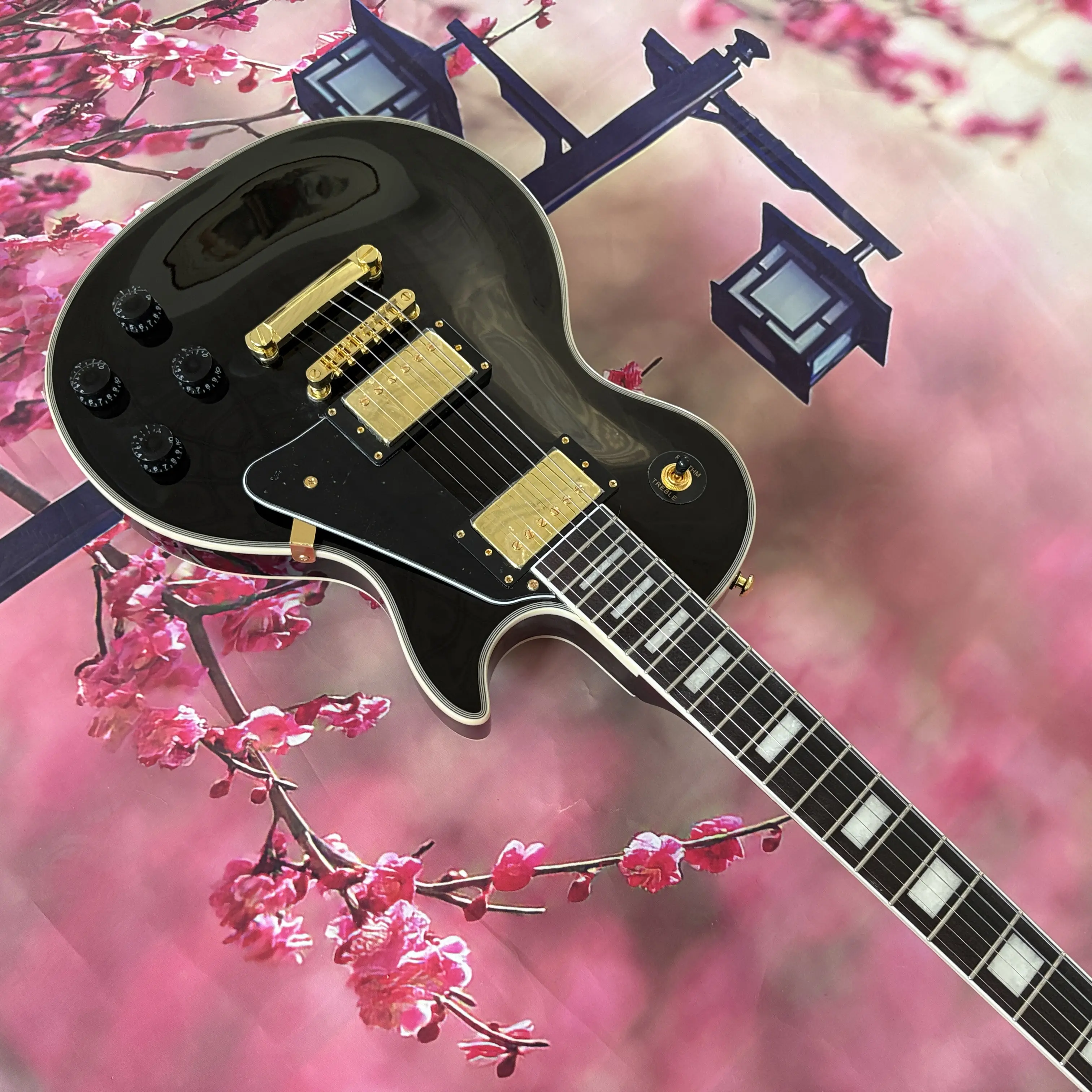 Crafted with a sophisticated black finish, this electric guitar features elegant white binding for a refined, classic look. The smooth rosewood fingerboard delivers comfortable playability and warm tonal character, paired with gleaming gold hardware that adds a touch of luxury and durability.