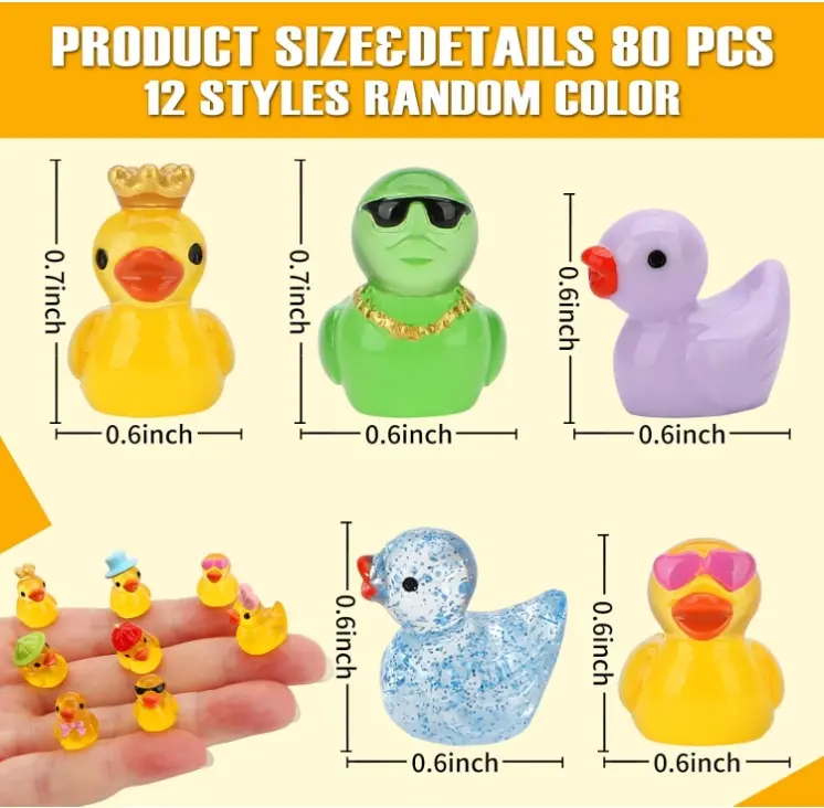 ·Mini Resin Ducks: You will receive 80 pcs mini ducks statues in 12 styles random multicolor, including various professional ducks, glitter ducks, glow in the dark ducks, sufficient quantity can meet your various needs, and add fun and surprise to your life