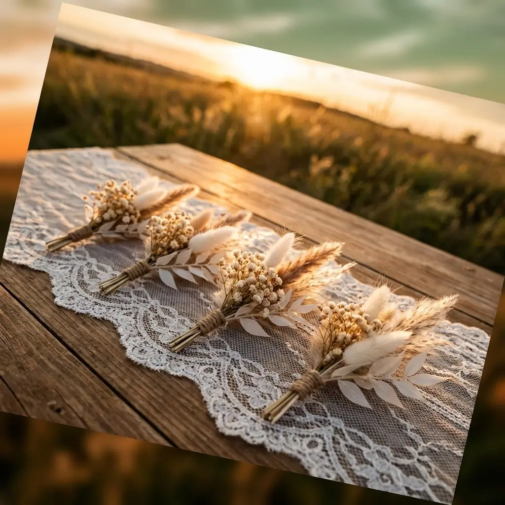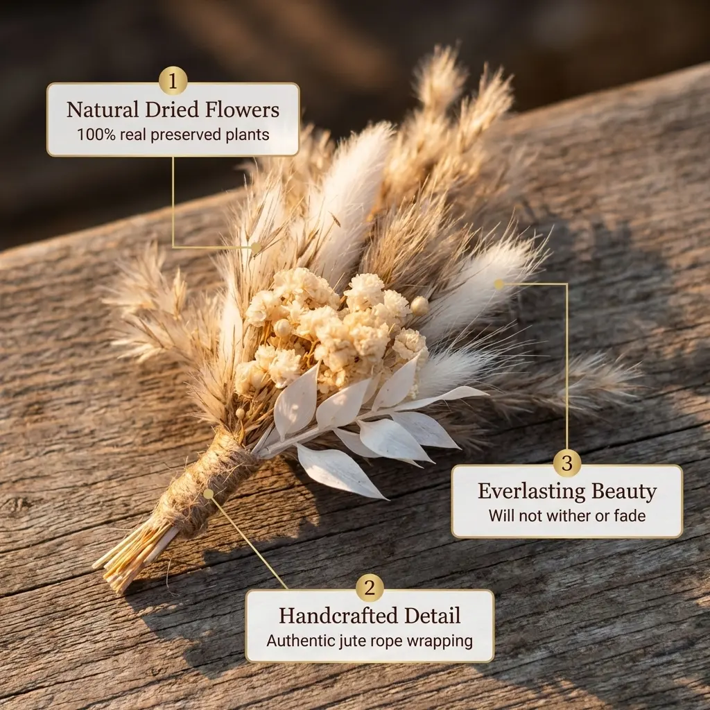 Crafted in a rustic boho style with preserved dried floral elements, these bouquets offer long-lasting decorative appeal without daily maintenance.