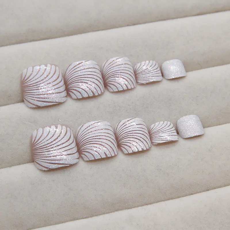 ✨ 24 PCS Fine-Shimmer Shell Pattern Press-on Fake Nails ✨
