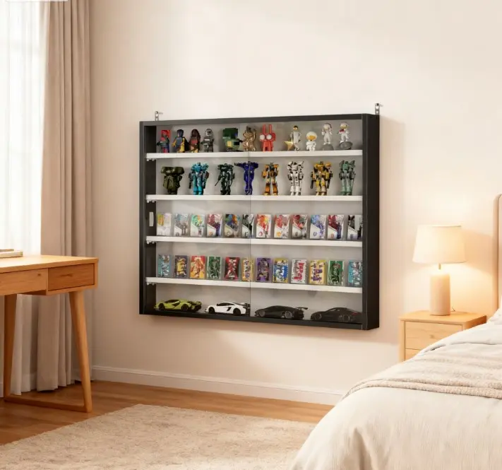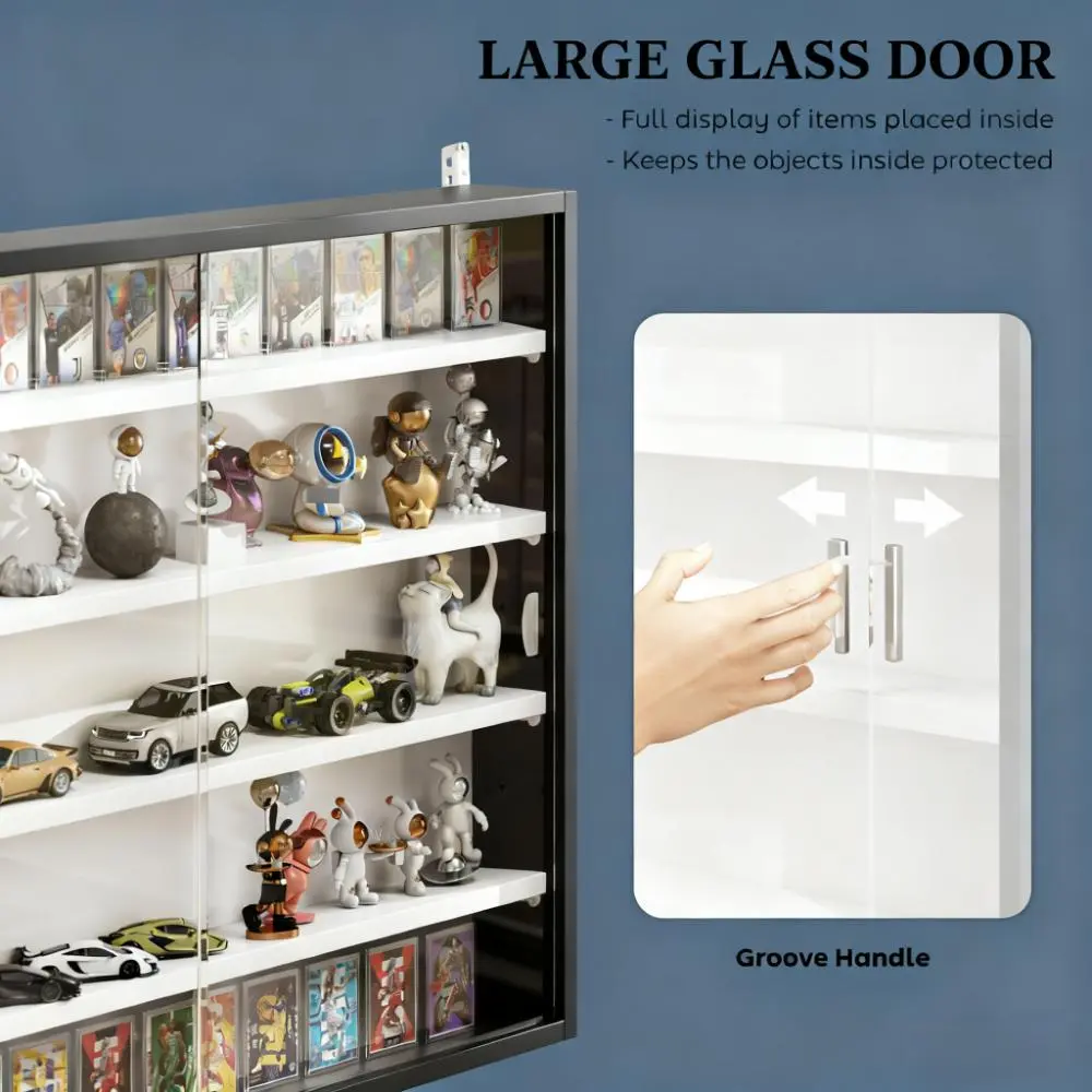 SAVEYOUR Black Wall-Mounted Display Case with Large Capacity Clear Door for a Stunning Collectible Showcase Ideal for Collectors