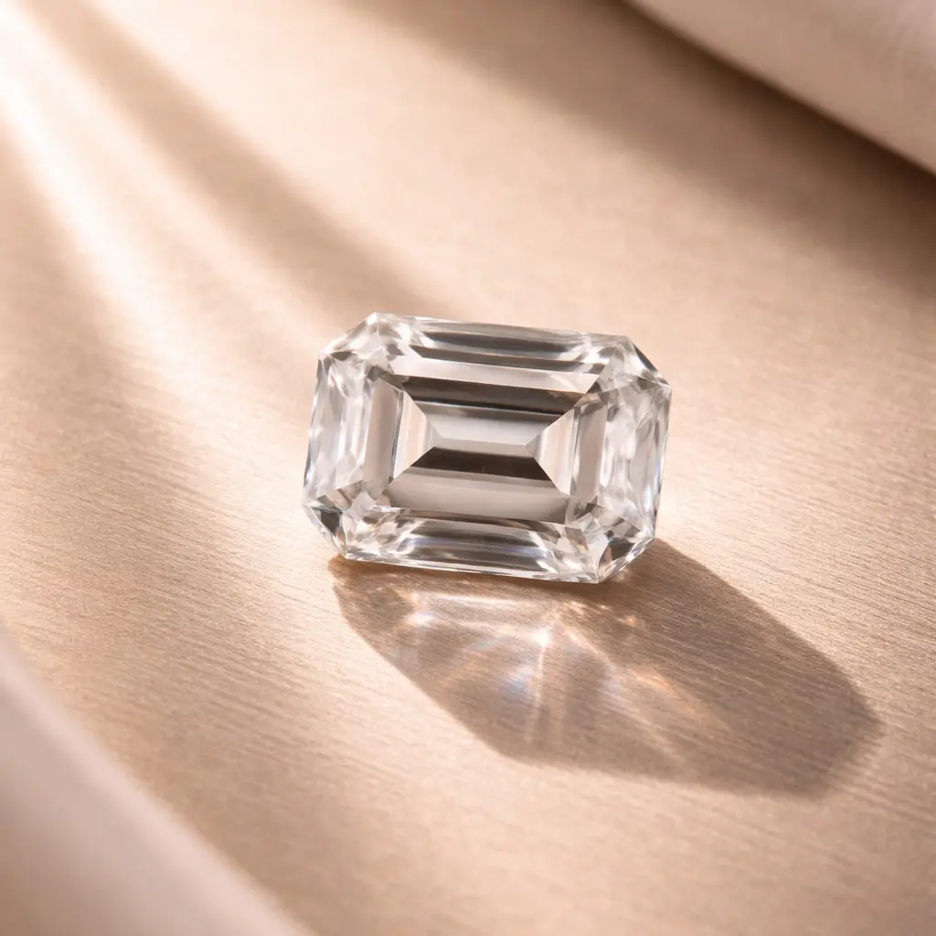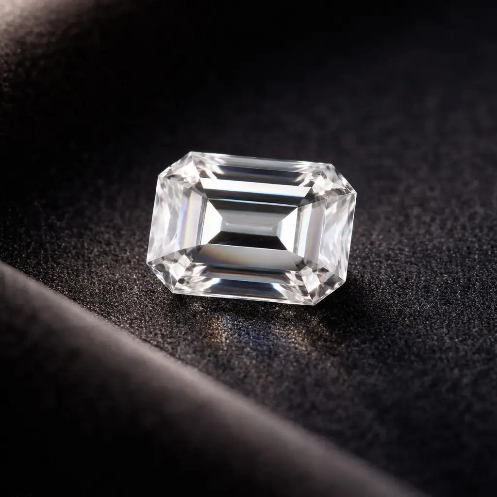 Rectangular unmounted diamond and sapphire gemstone with accompanying certificate