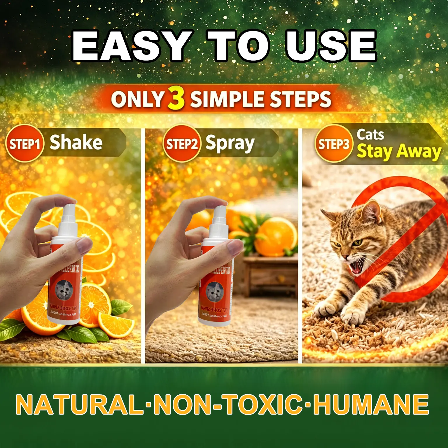·EASY TO USE:Shake the spray well, then apply from 20-30 cm away—whether for anti cat scratch protection on furniture or outdoor areas with cat spray.Start by spraying 2-3 times daily,adjusting frequency based on your cat’s behavior until it avoids scratching or entering treated zones.Caution:Do not spray this product on cats