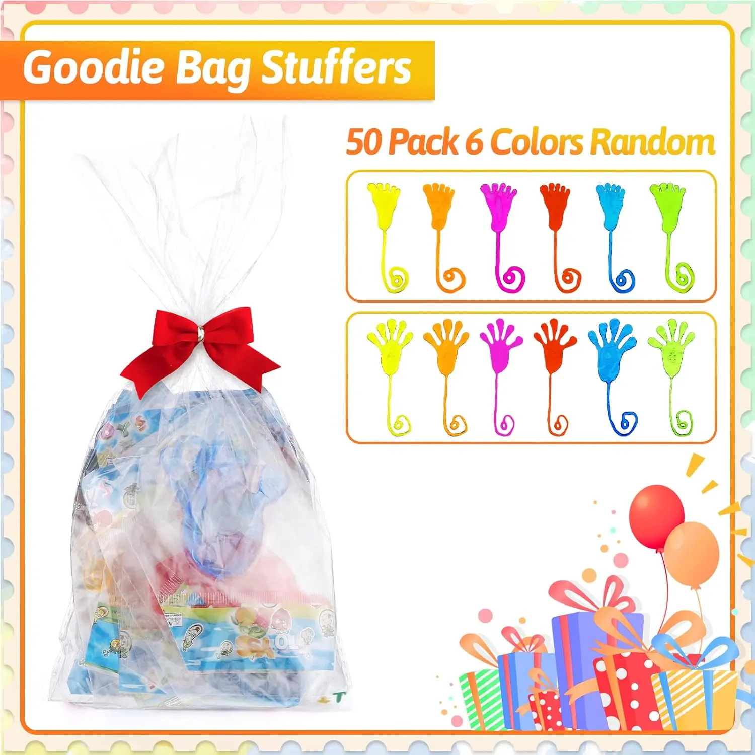 50-Pack Sticky Hands Toy Party Favors | Perfect for Kids Goodie Bags, Classroom Valentines, Birthday Student Gifts, and Party Supplies Stuffers