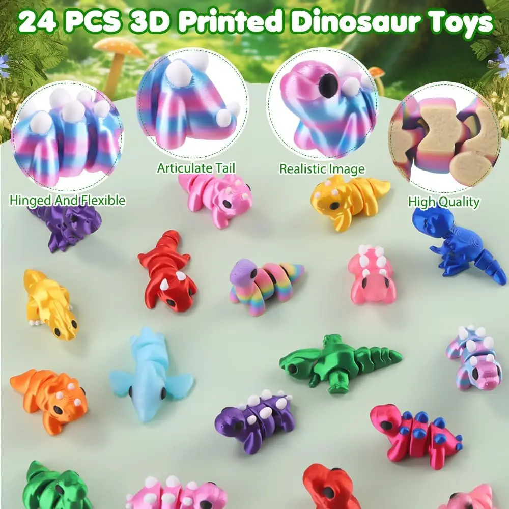 3D printed dinosaur set features a variety of colors and styles.Each dinosaur is meticulously designed with vibrant hues and unique shapes.Whether it's light blue,pink,purple,or green,these dinosaurs are sure to captivate children's attention and spark their imagination