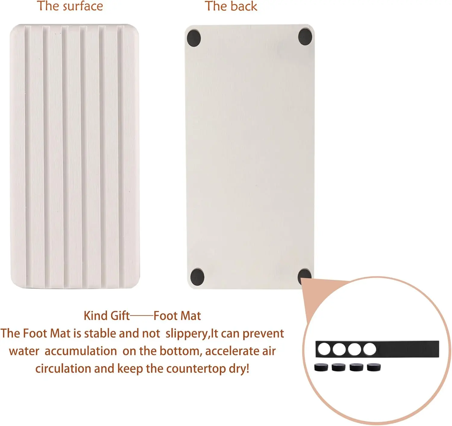 ·Made from natural Diatom mud and plant fiber, small holes within diatomite enable it have amazing water absorption. They could absorb water and gets dry in a few minutes. It makes the Bathroom Counter top more dry and tidy.