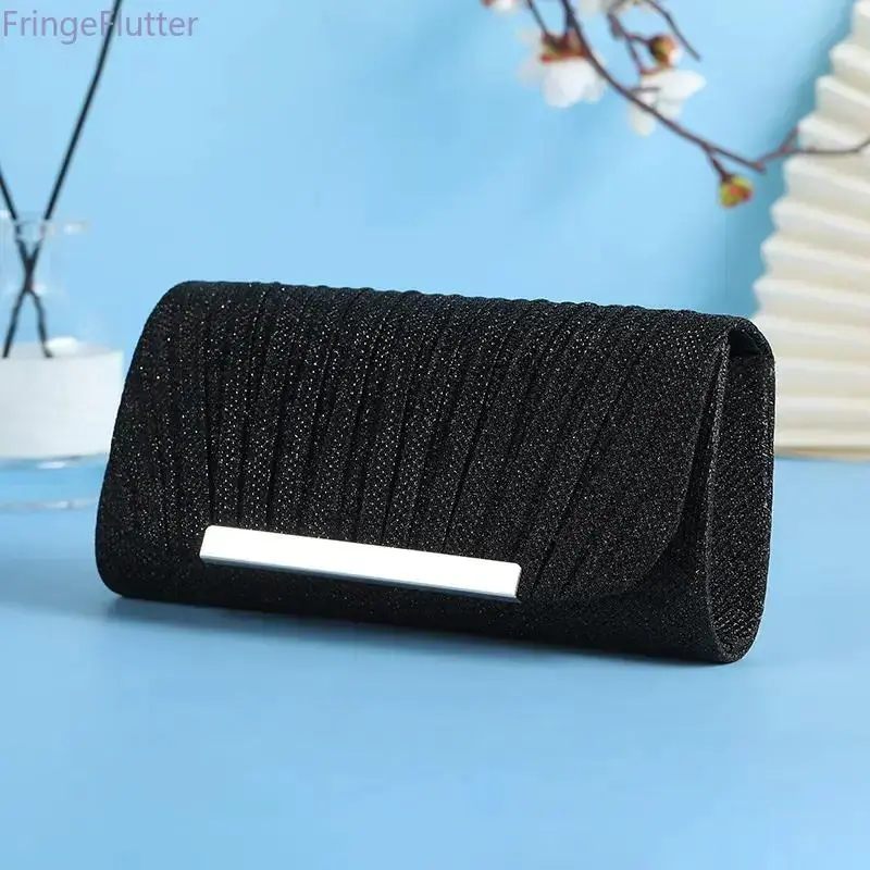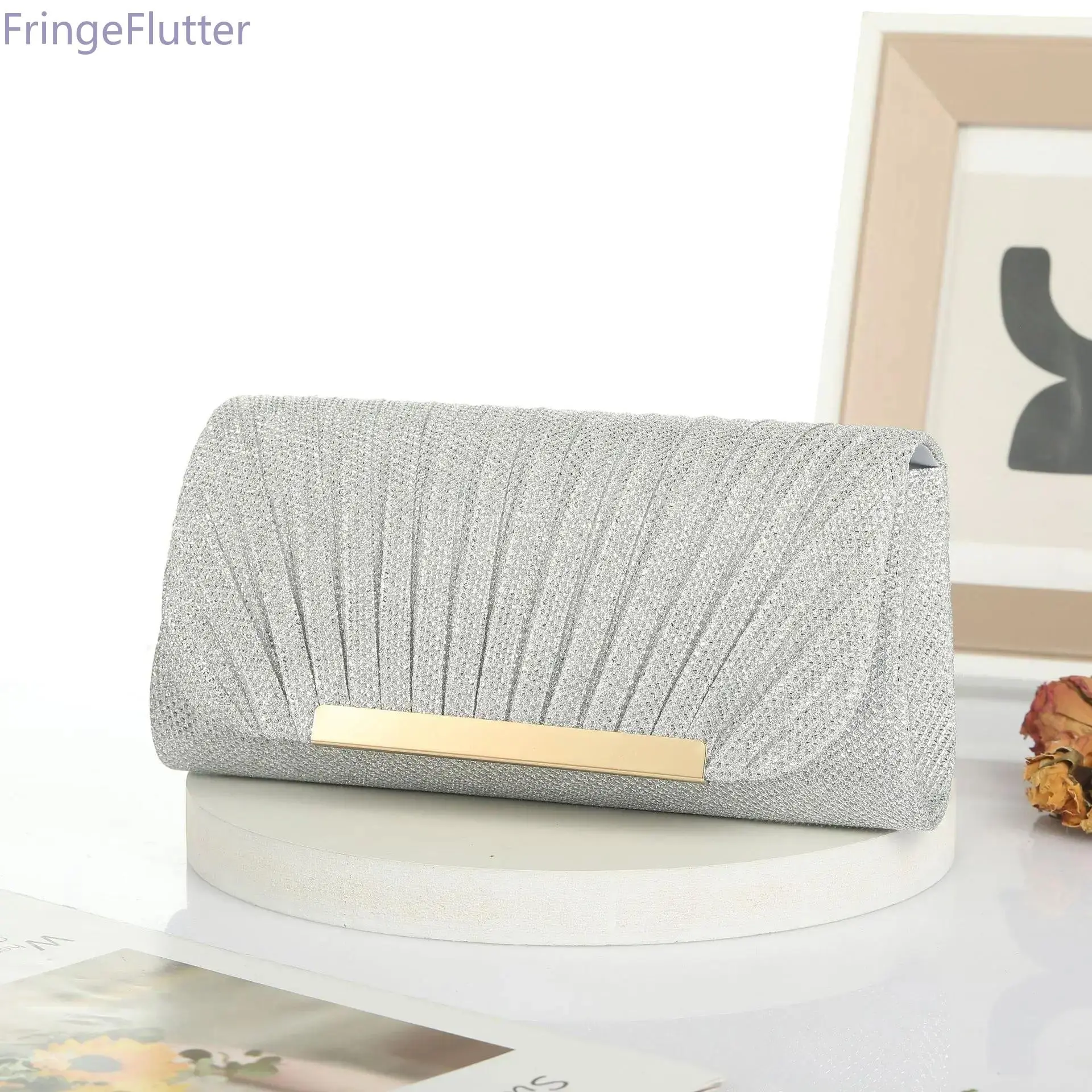 FringeFlutterSparkly Sequin Evening Bag | Pleated Chain Clutch for Prom, Wedding & Date Night