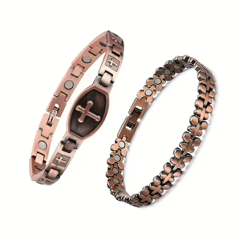 The bracelets feature copper plating, giving them a sleek and modern look. The magnetic design ensures a secure and comfortable fit. Ideal for everyday wear, these bracelets are a thoughtful gift for loved ones.