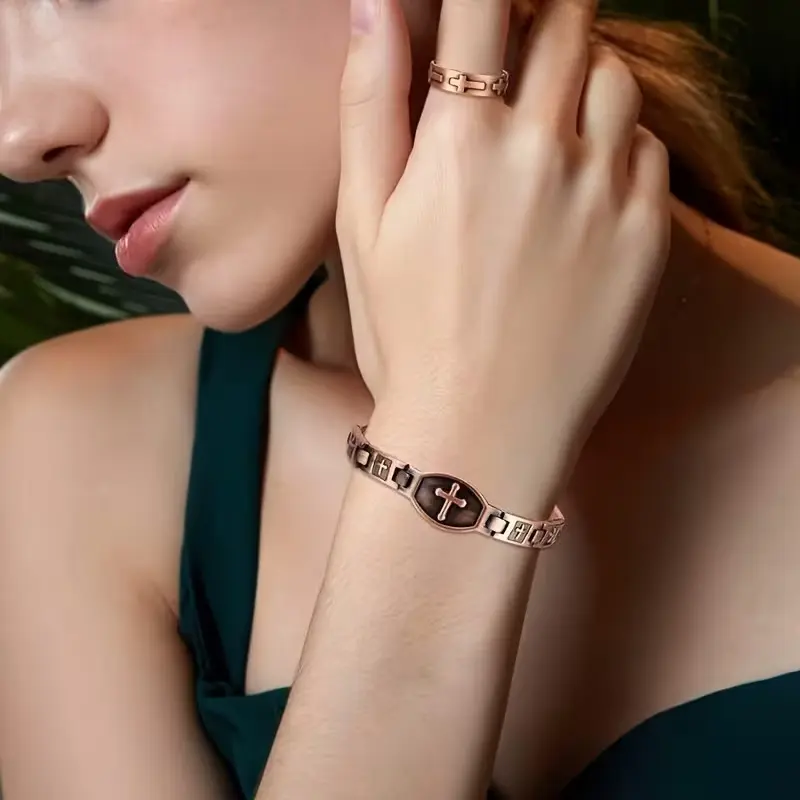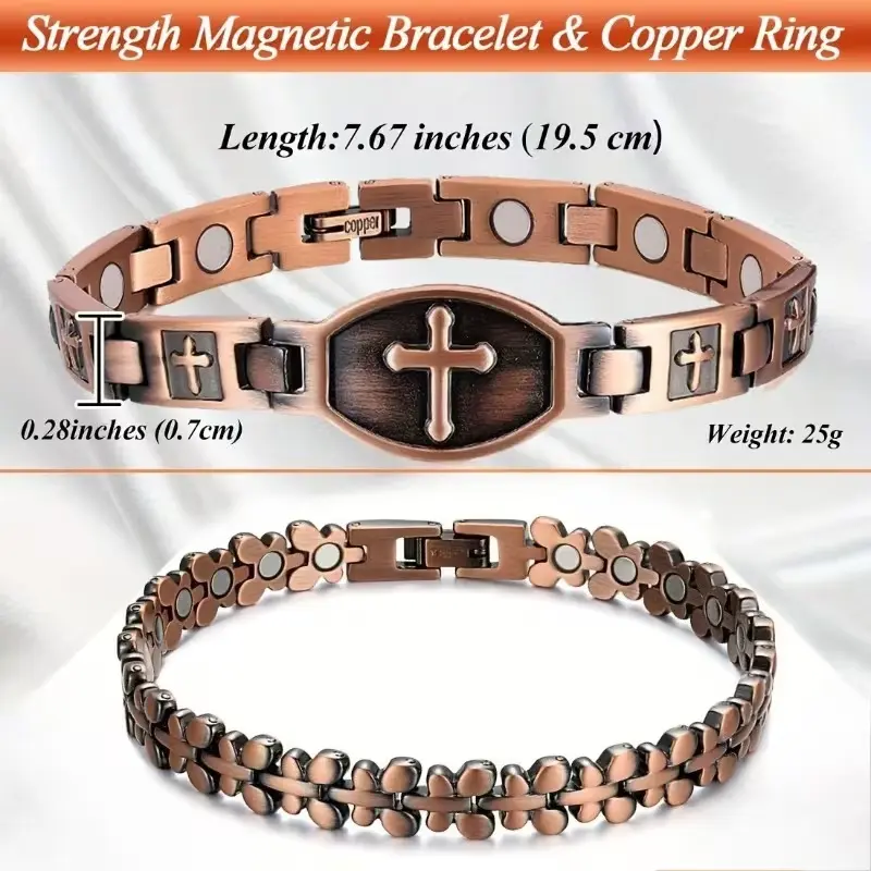 ✨ 2pcs Women's Magnetic Copper Bracelets are ideal for couples, birthdays, anniversaries, and holidays. These bracelets come in butterfly and cross styles, adding a touch of elegance to any outfit. Perfect for gifting, they symbolize love and connection.