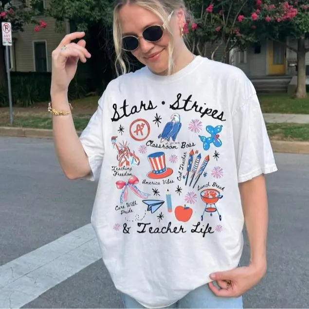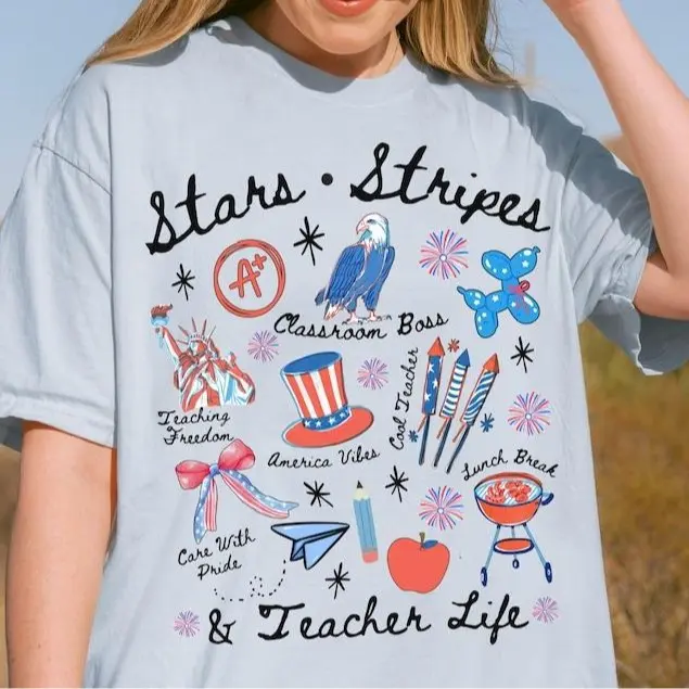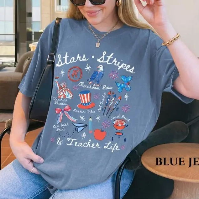 4th of July Teacher Comfort Colors Shirt Patriotic USA Teacher Shirt America Flag Teacher Tee Teacher Gift