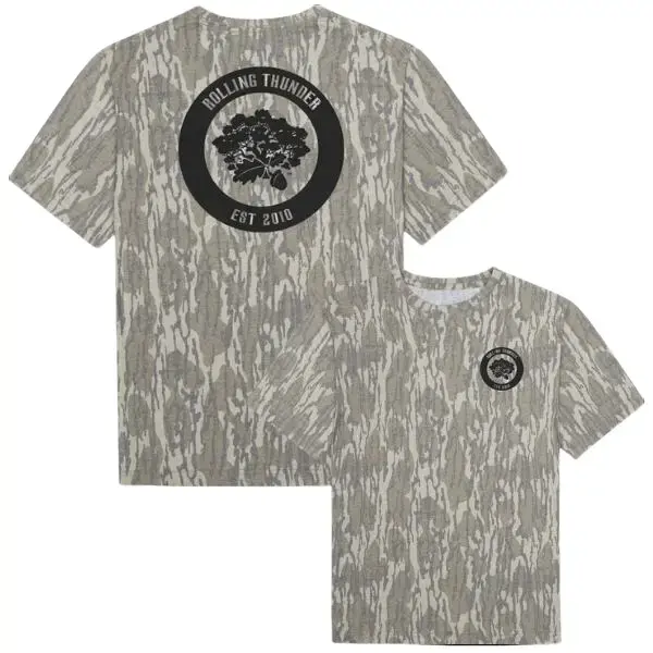 Rolling Thunder Est 2010 T-Shirt, Tree Bark Camo Print, Hunting & Outdoor Graphic Tee, Unisex Rolling Thunder Camo T-Shirt, Vintage Woodsman Style