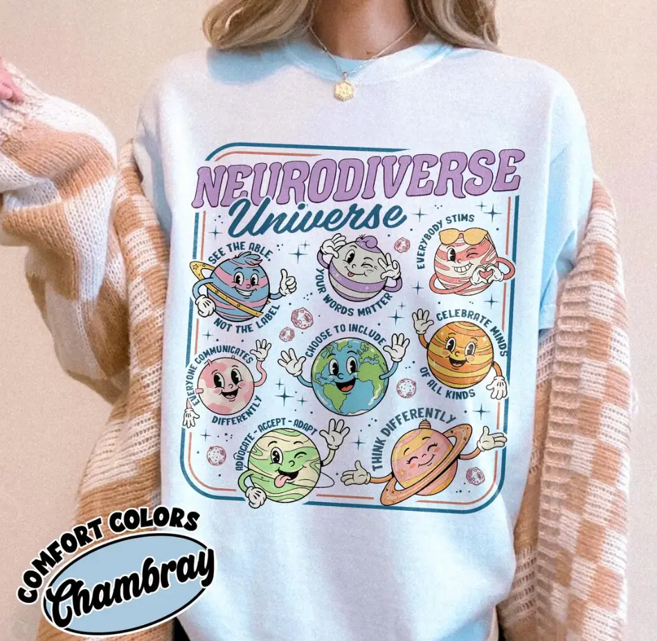 5. Neurodiverse Universe Comfort Colors Shirt, Autism Awareness TShirt, Space Neurodiversity Sped Teacher Shirt, Special Education Gift
