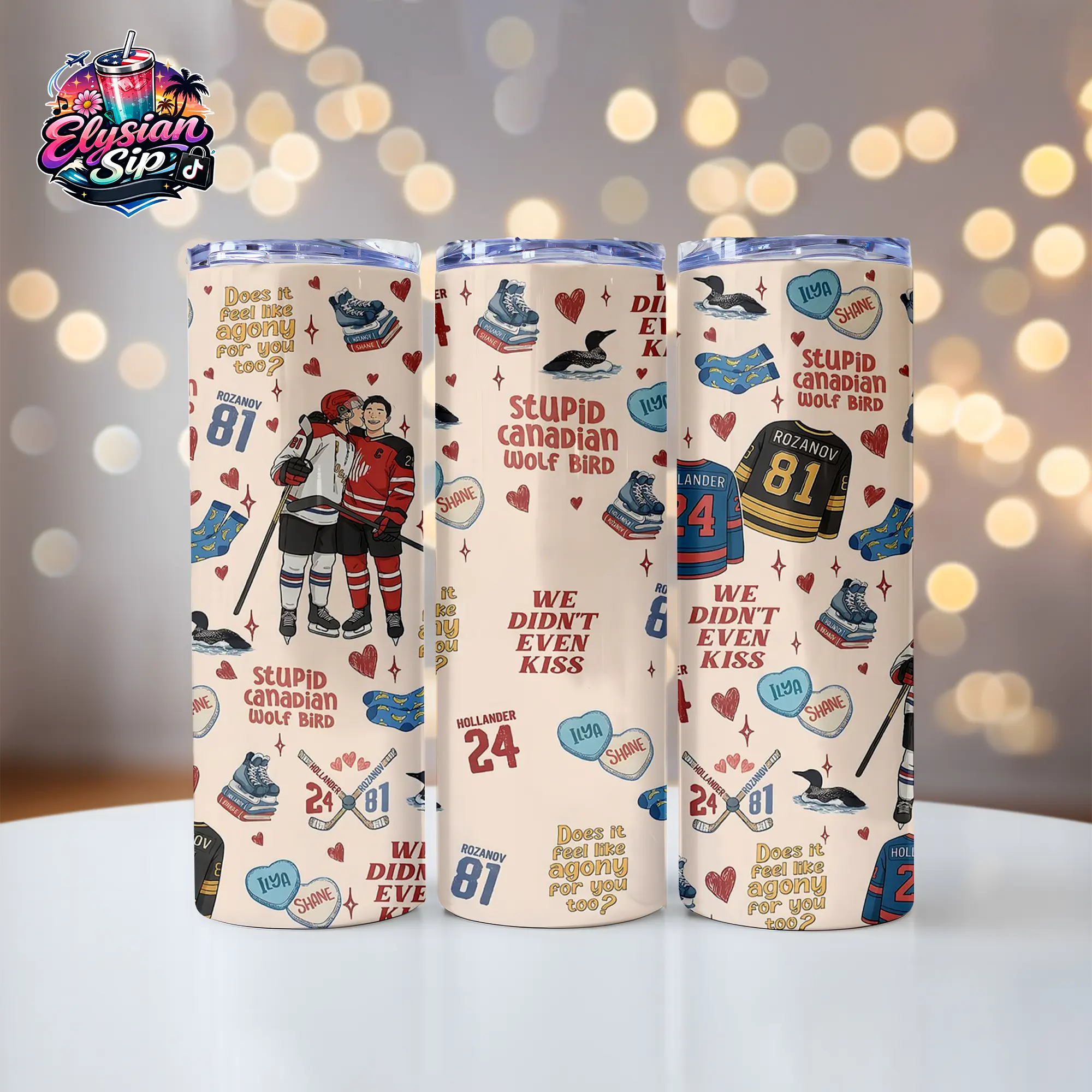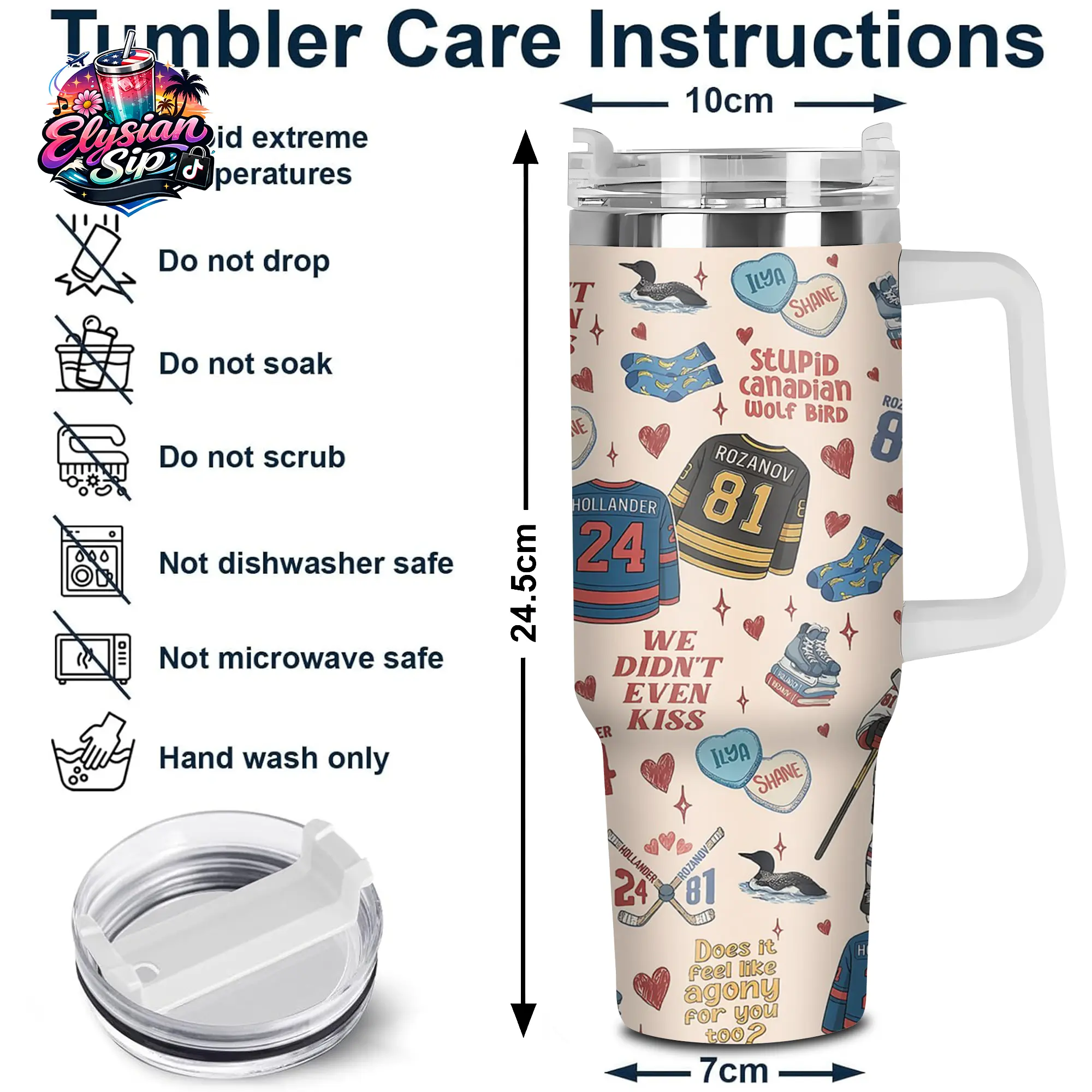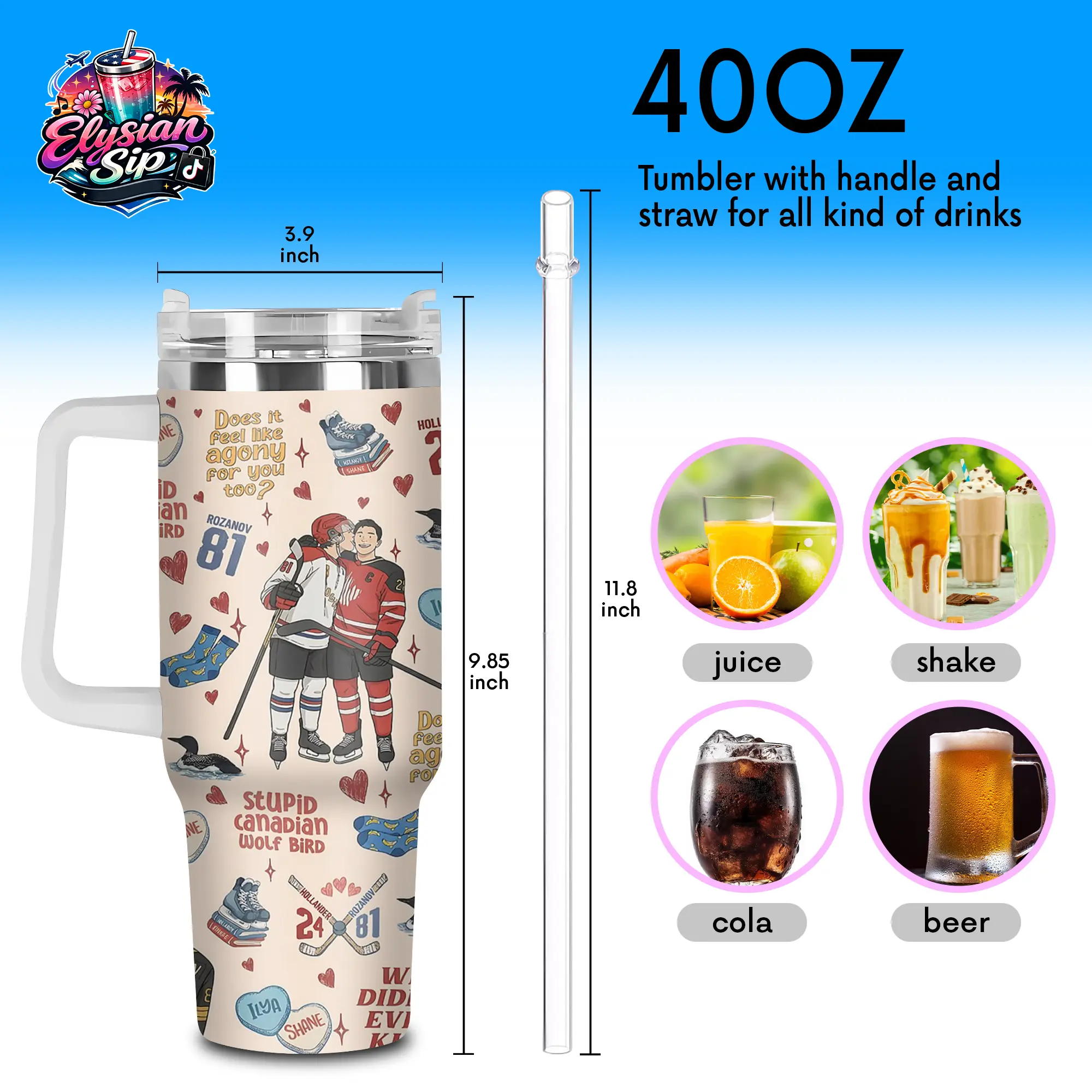[Elysian Sip] - Ice Hockey Couple Aesthetic 40oz & 20oz Stainless Steel Tumbler with Handle – Romantic Hockey Fan Insulated Mug, Cute Love Story Cartoon Style Cup, Valentine Gift, Leakproof Travel Mug.