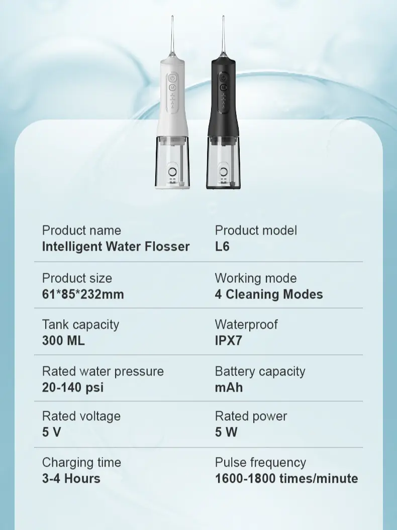 Upgraded 300ml Extra-Large Water Tank, No Need for Frequent Refills: Equipped with an upgraded 300ml water tank—twice the capacity of similar products—this water flosser eliminates the need for frequent refills, making your oral care routine more convenient and efficient.