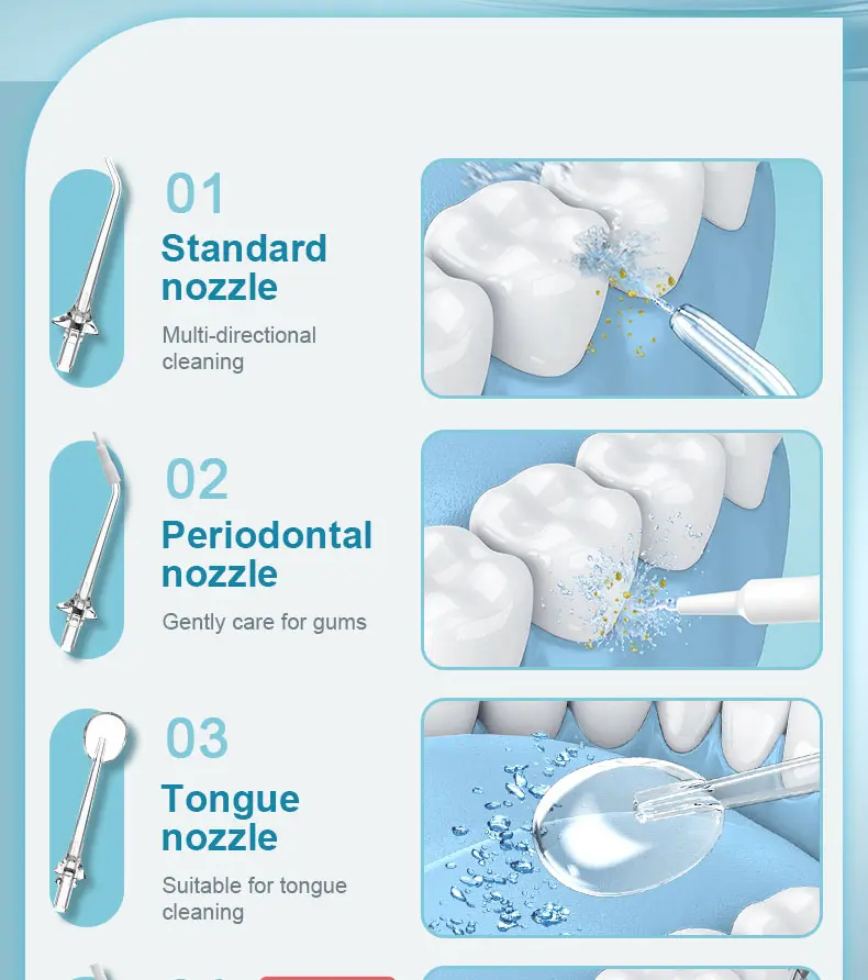 Powerful yet gentle cleaning: This advanced water flosser uses a directed pulsating water stream to remove hidden plaque and food debris, making it ideal for cleaning hard-to-reach areas such as braces and dental implants.