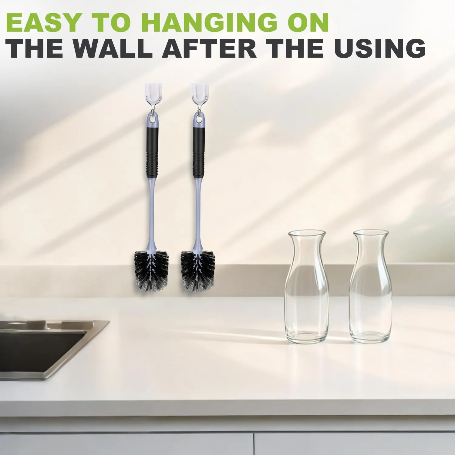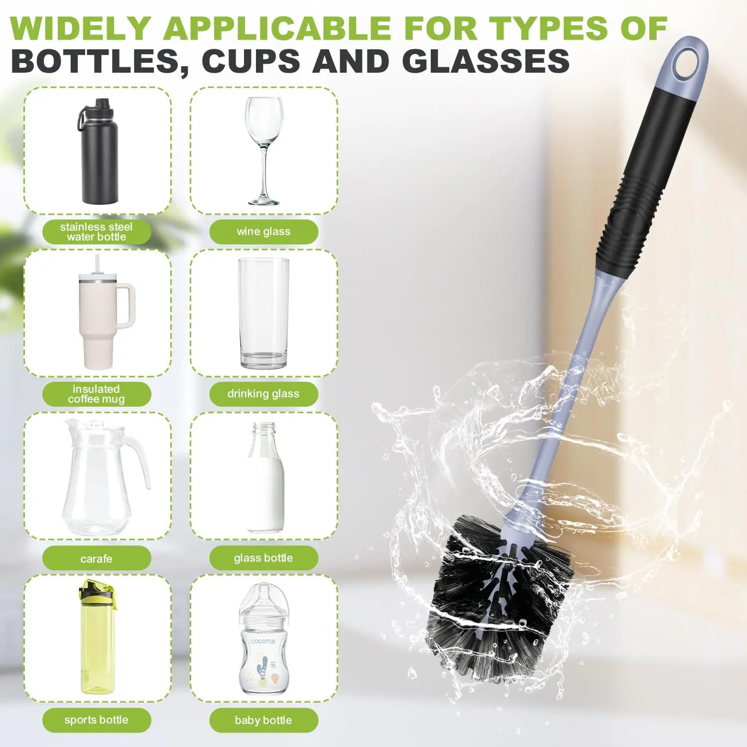 Long Handle Bottle Brush Set, 2-Pack Flexible Nylon Scrub Brushes for Reusable Water Bottles, Cleaner for Thermos, Tumblers, Glassware & Mugs - Black