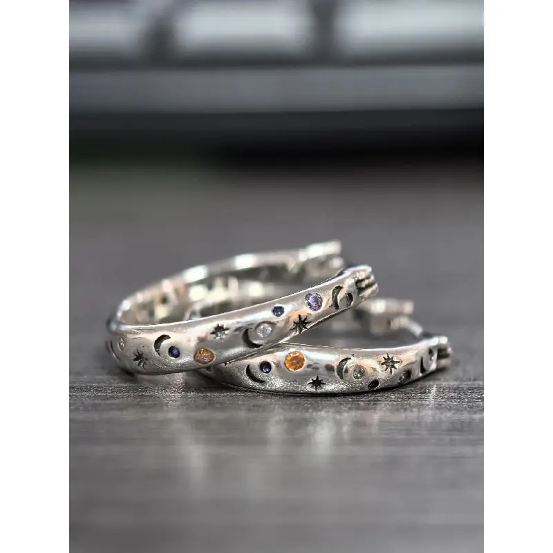 Star & Moon Engravings Hoop Earrings, Fashion Jewelry for Party, Daily Clothing Decor, Trendy All-Match & Exquisite Jewelry for Birthday Gift, Fashionable Hoop Earrings