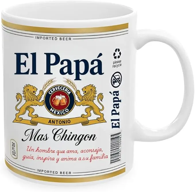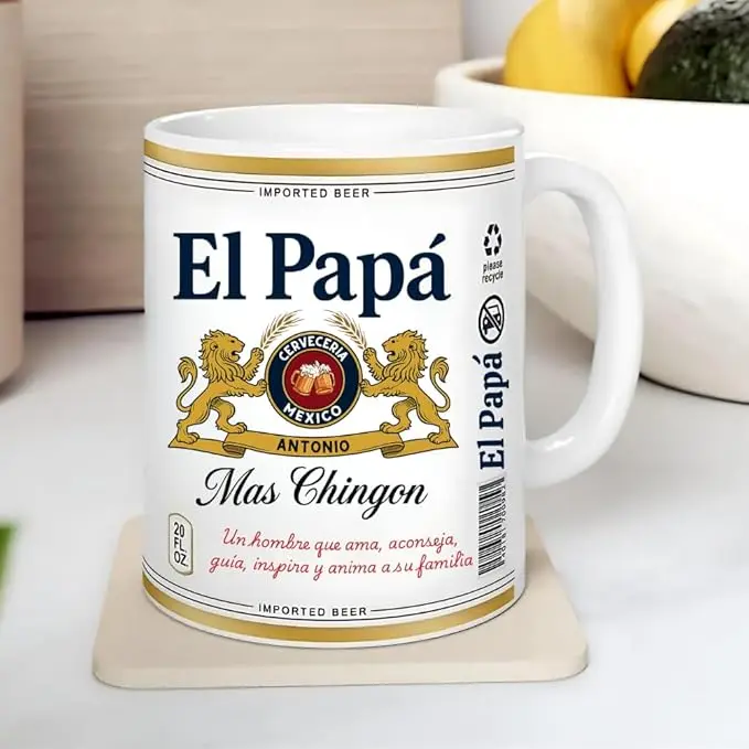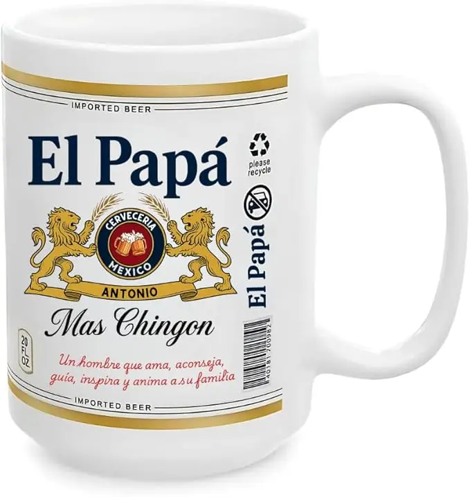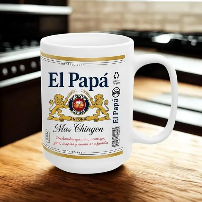 El Papa El Abuelo El Tio Coffee Mug, Yo Soy El Papá Mas Chingon Mug, Mexican Beer Style Custom Name Mug, Father's Day Beer Lovers Gift Mug for Dad Papá, Best Dad Ever Mug for Mexico El Papá 15oz