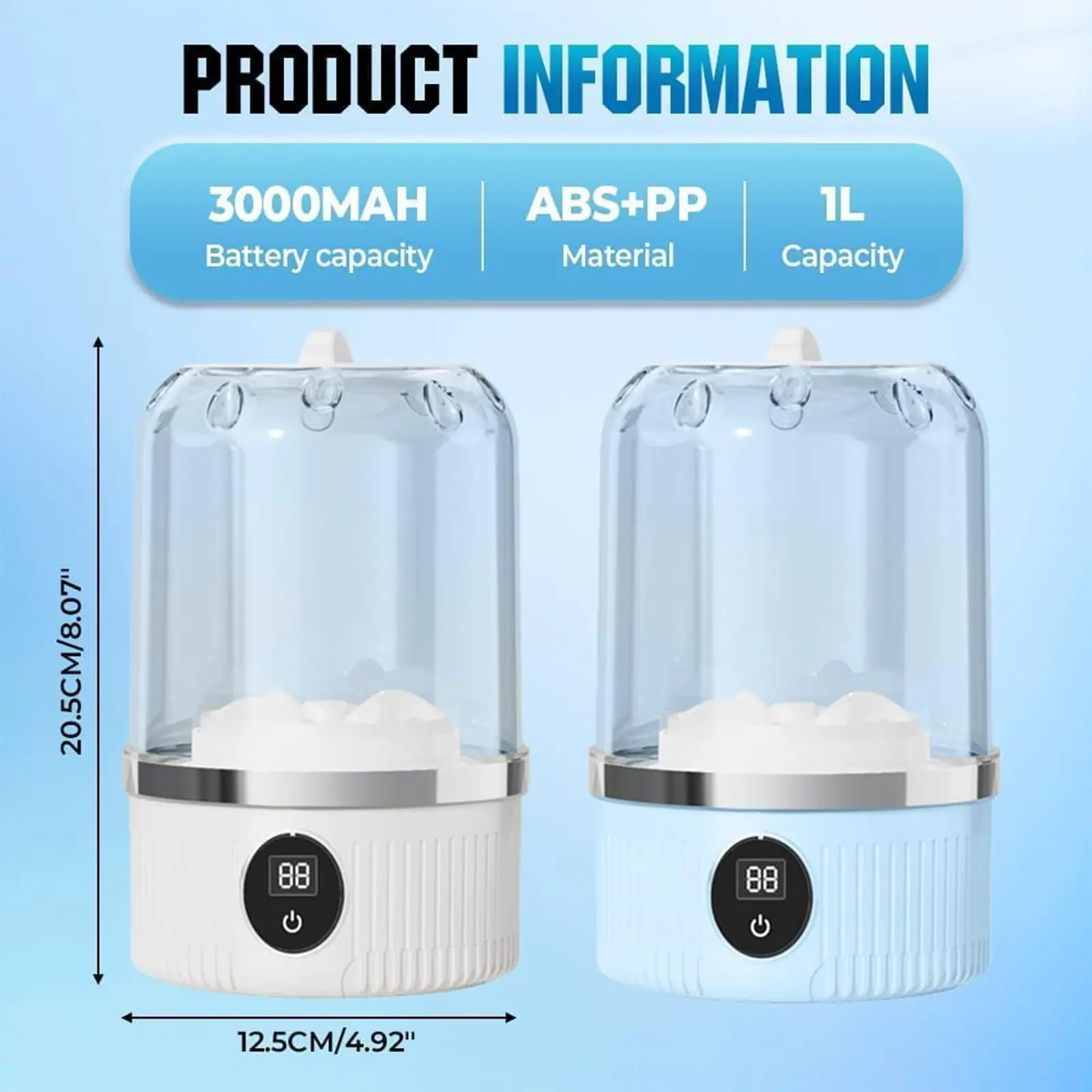 Equipped with a 3000mAh rechargeable battery for cordless use. Choose between 5-minute and 15-minute wash modes with simple one-button operation, meeting different cleaning needs while saving time and effort.