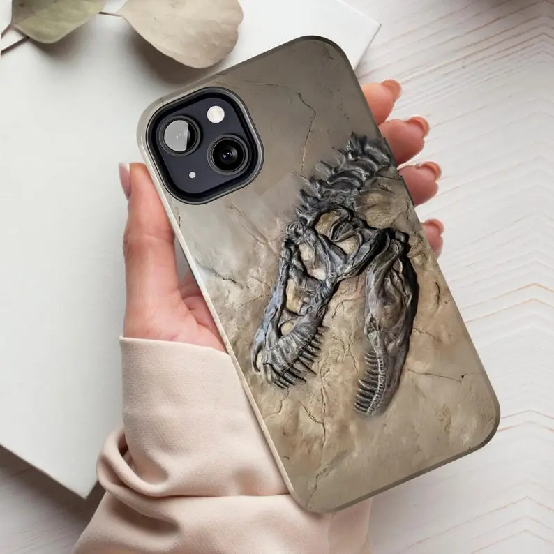 Fossil Bone Phone Case Prehistoric iPhone Cover Dinosaur Samsung Galaxy Ancient T-rex Google Pixel Jurassic Period Design History Lover Tough Case for iPhone Samsung Google Pixel Polycarbonate TPU Impact Resistant