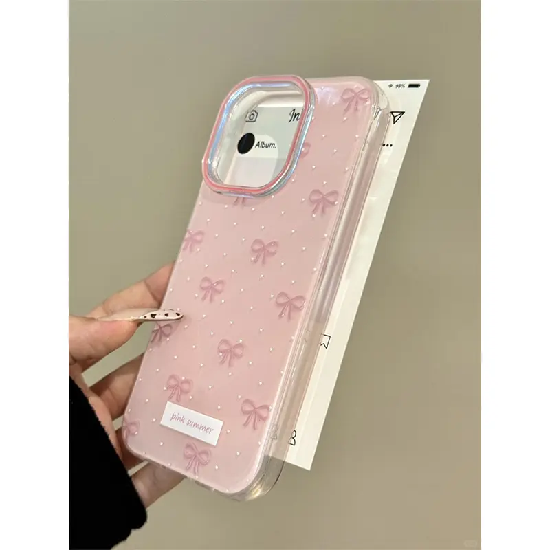 Single-Layer Foundation-Pink Bow Phone Case — Compatible with iPhone 16 Pro Max, Apple 15 (New Model), 14 Pro, and 13 Pro — Cute Style