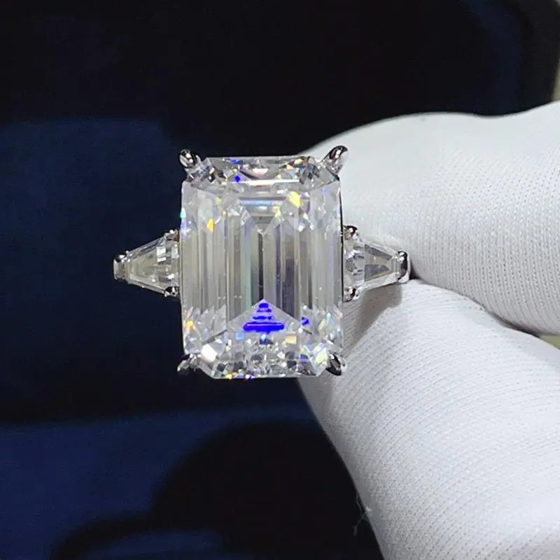5CT 10CT Emerald Cut Full Moissanite Three Stone Ring
