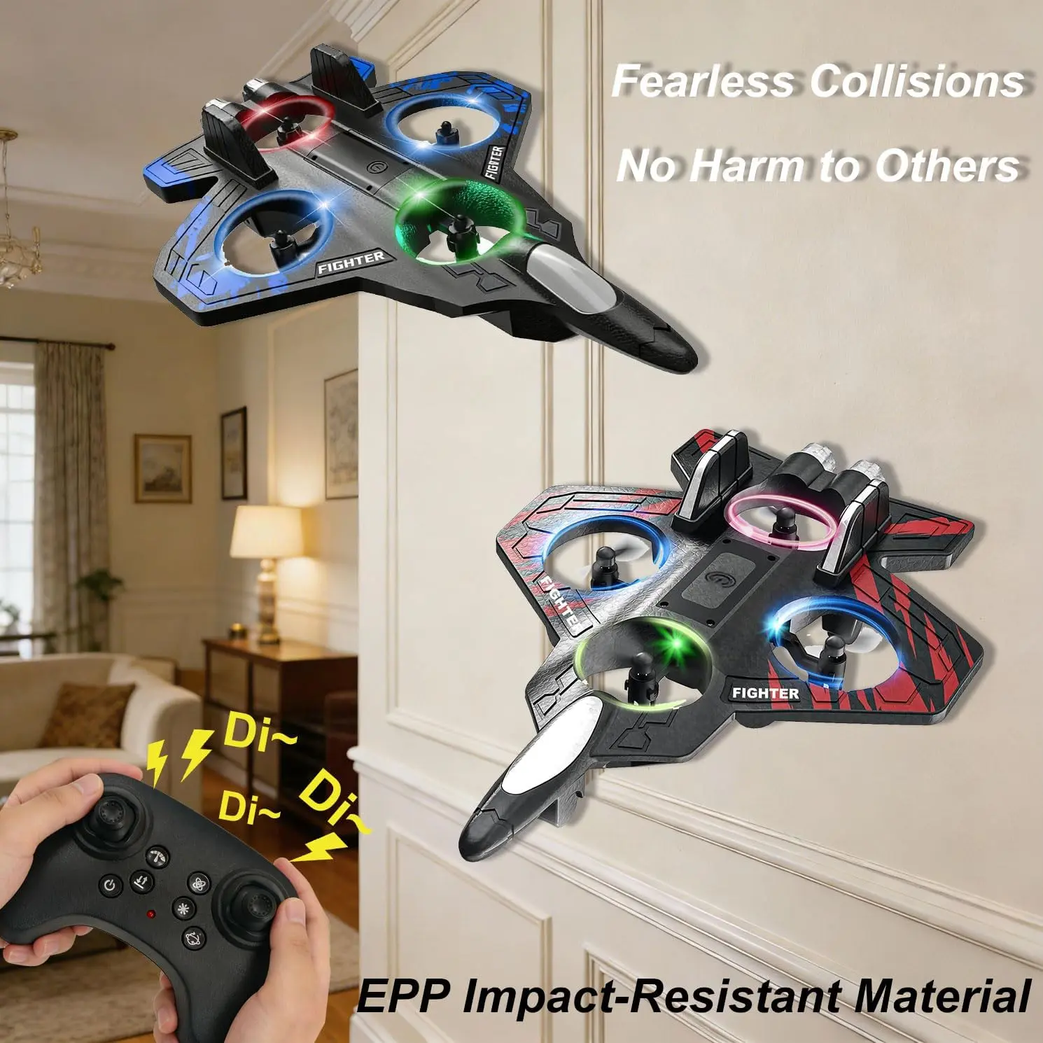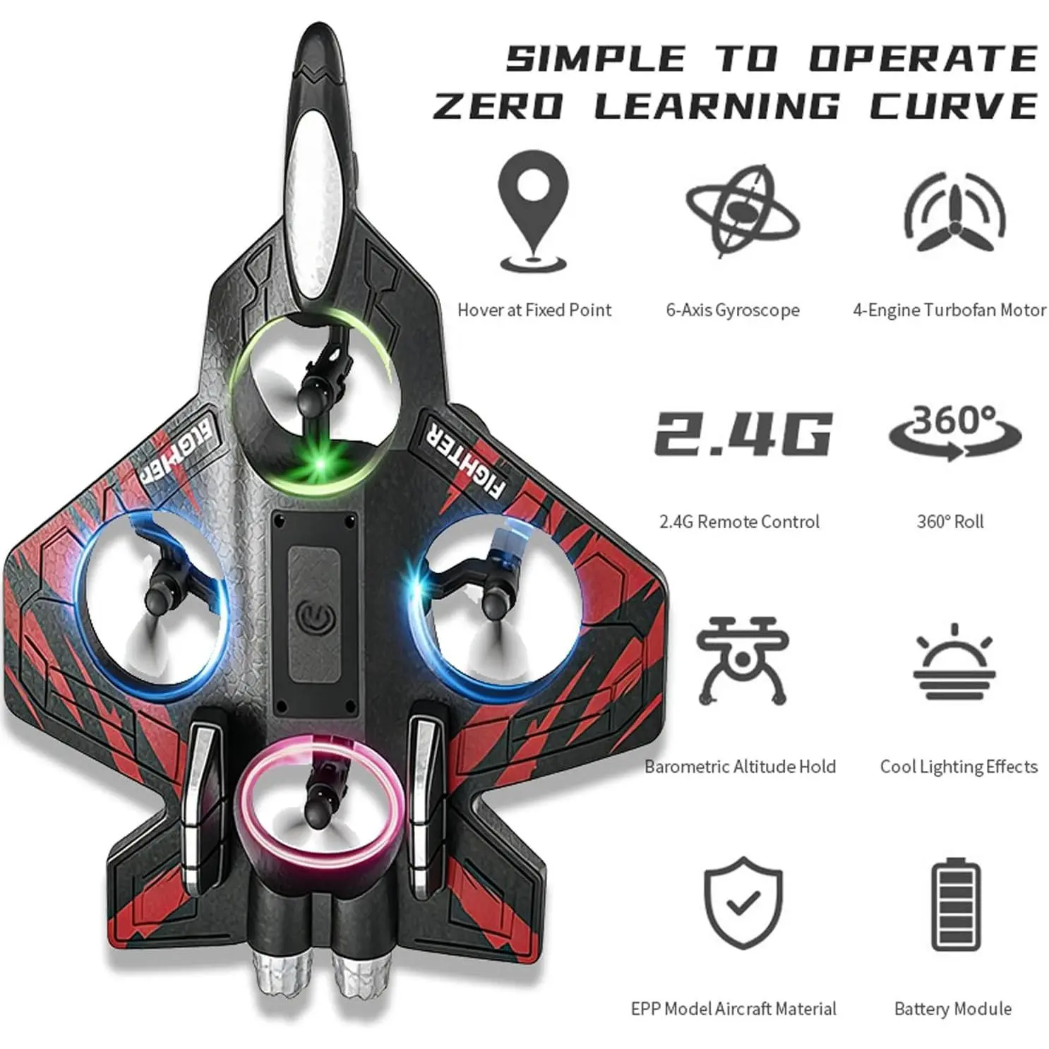 Foam Remote Control Airplanes, RC Planes with Light, RC Airplane Fighter Jet, 360 ° Stunt Roll RC Planes, Stunt Roll, Drones for Men, Remote Control Plane (Red)