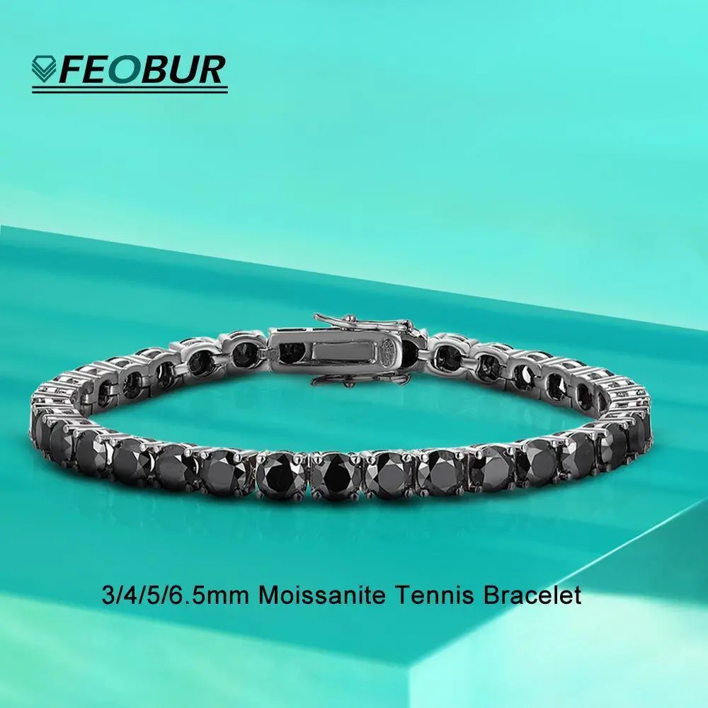 3/4/5/6.5MM Black Moissanite Tennis Bracelet for Women Men Original 925 Sterling Silver Full Diamond Bracelets Luxury Jewelry