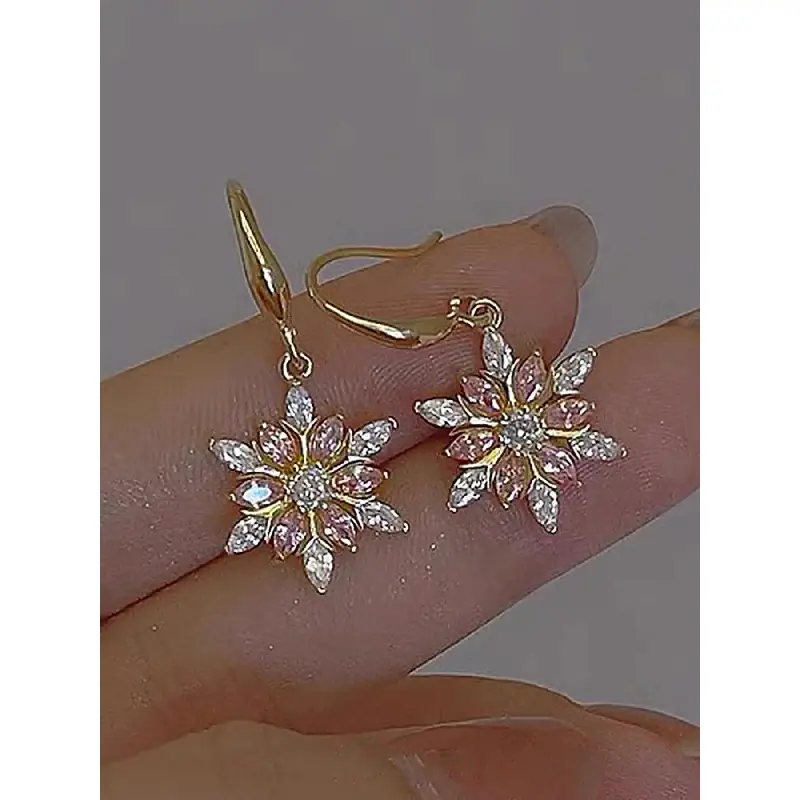 A pair of sweet, pink and diamond-encruffled, high-end, exquisite snowflake Christmas, cute and elegant, and personalized earrings for ladies Eternal Diamond Earrings