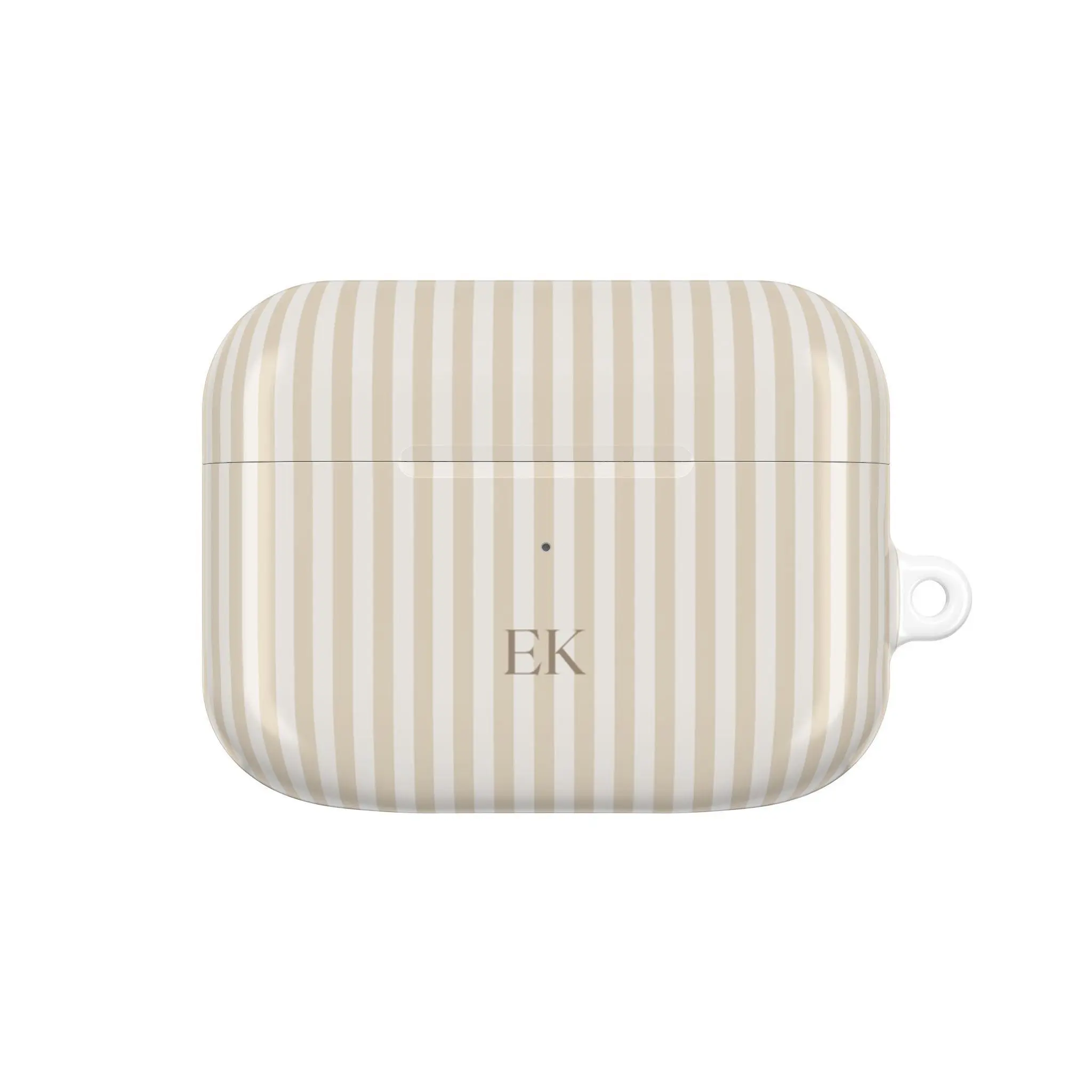 Personalized Beige AirPods Case Custom Monogram for AirPods 1 2 3 4, AirPods Pro 1 2 3, Brown Striped Aesthetic Earbuds Cover, Neutral Summer Protective Case
