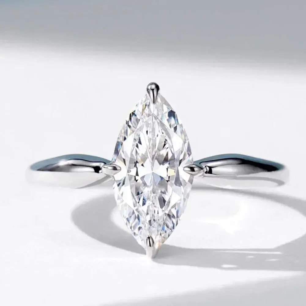 Certified Full Moissanite Wedding Bridal Rings Set for Women 925 Silver Marquise Cut Diamond Engagement Ring Eternity Band