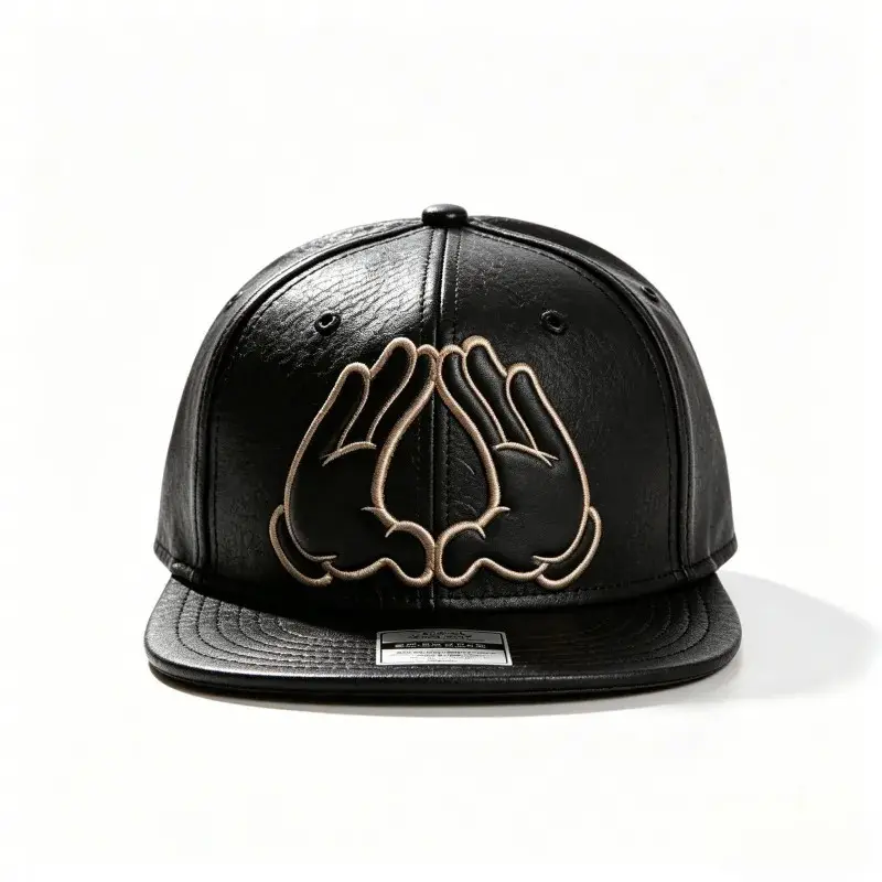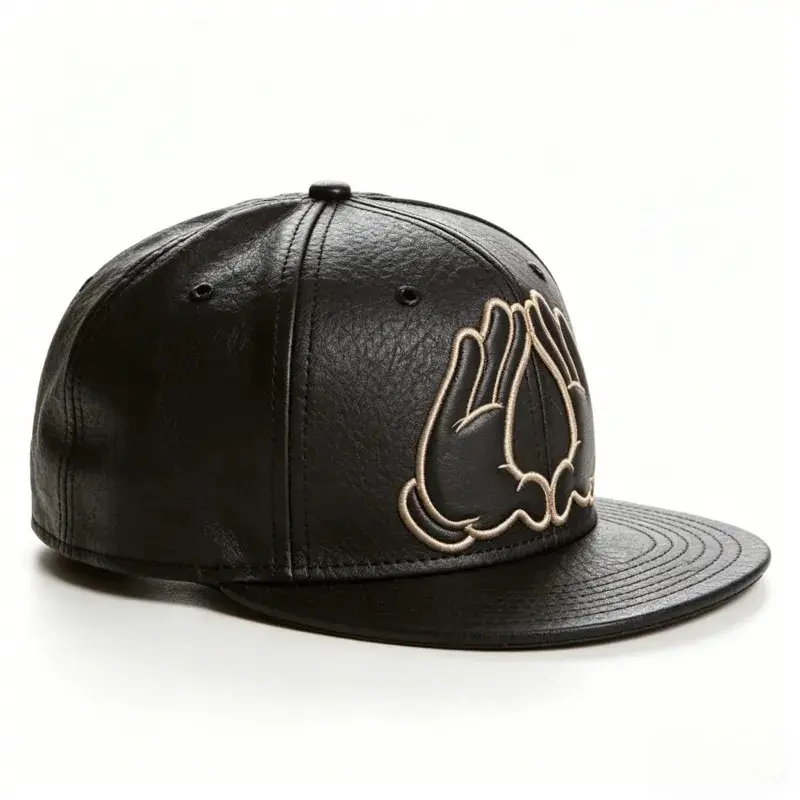 Black leather flat-brim hat for outdoor adult sports, sun protection, travel, street dance, baseball cap
