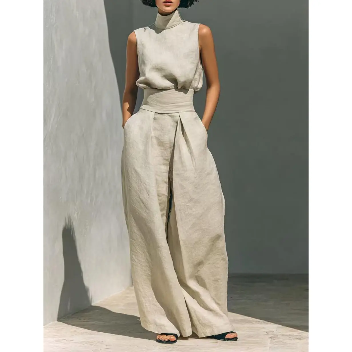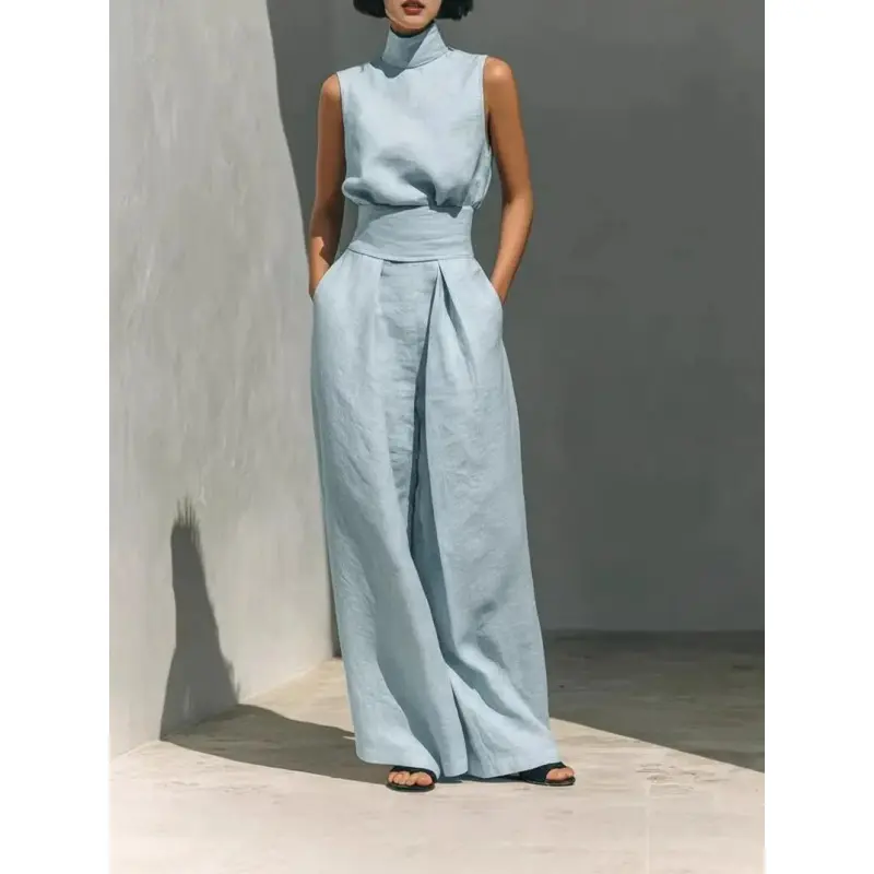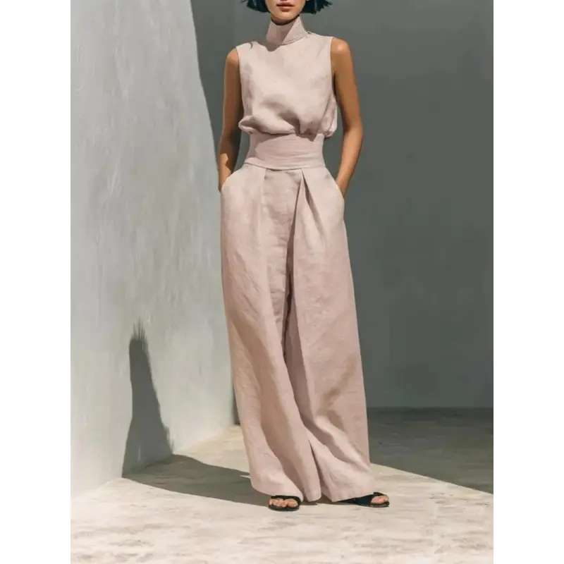 2026 Summer New Arrival: European-Style Cotton and linen Sleeveless Top and Casual Trousers Two-Piece Set for Women-Perfect for lounging at home, vacations, and walks-Great as a holiday gift for women-Ideal for everyday wear Lounge Pants Clothes Suits