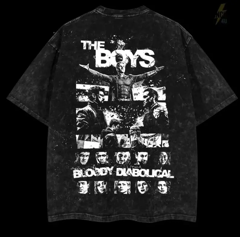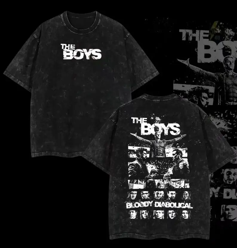 Retro The Boy Season 5 - Homelander Graphic Tee Washed – Double Sided Print Oversized Acid-Washed Heavyweight Cotton T-Shirt – Unisex Comics Tee, Perfect Gift for Comic Fans and Lovers Menswear Tops