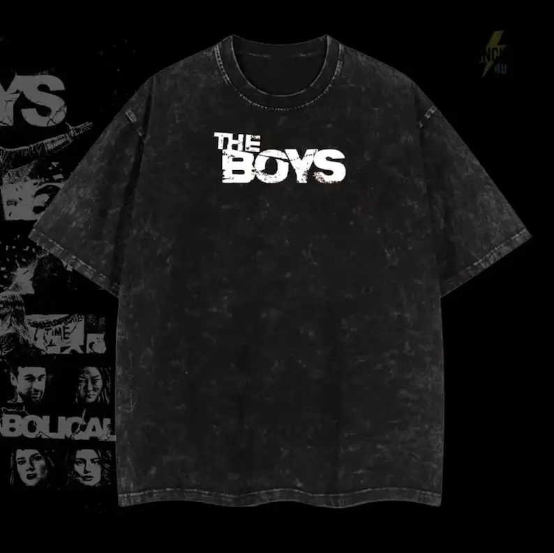Retro The Boy Season 5 - Homelander  Graphic Tee Washed – Double Sided Print Oversized Acid-Washed Heavyweight Cotton T-Shirt – Unisex Comics Tee, Perfect Gift for Comic Fans and Lovers Menswear Tops