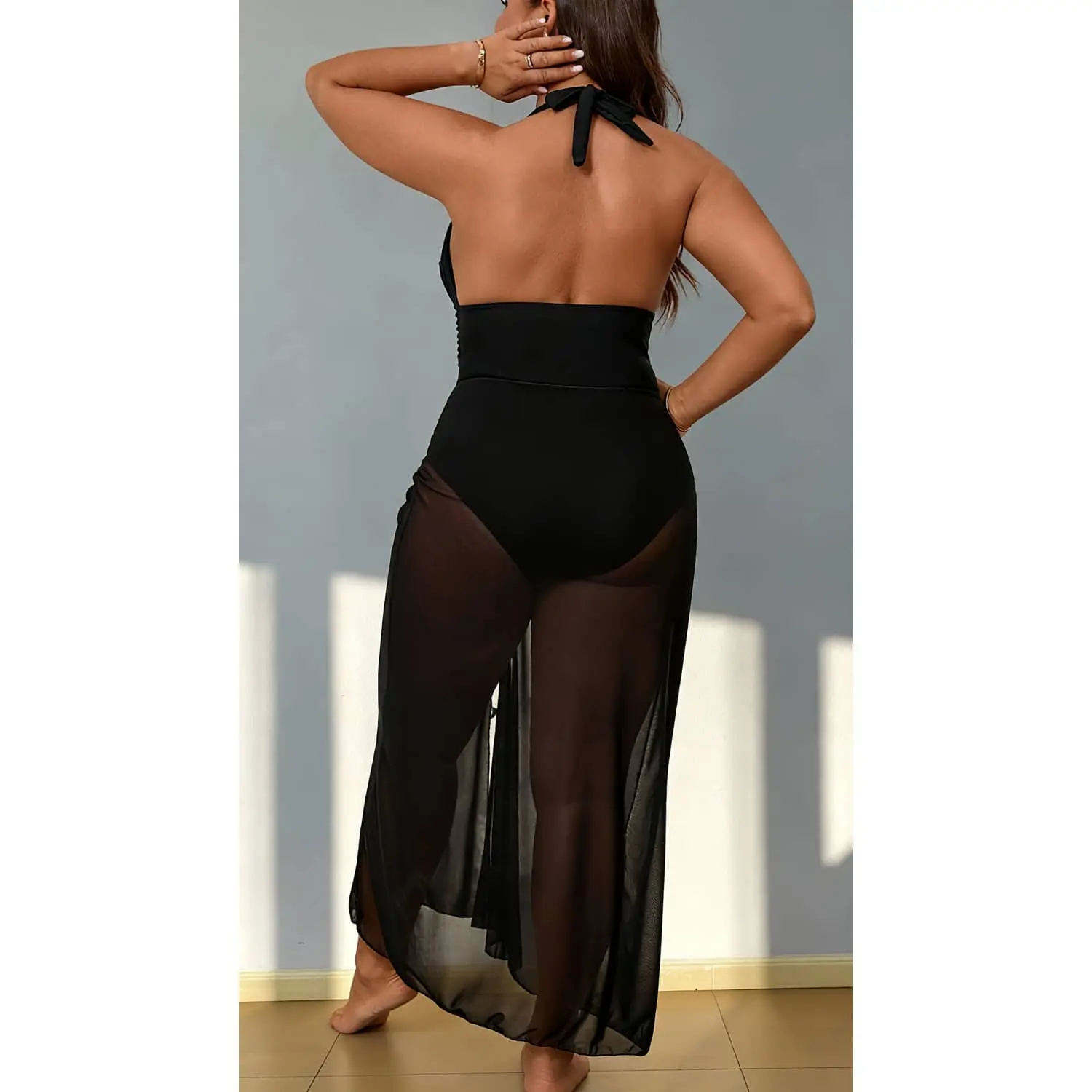 Embrace beach days with this stylish two-piece plus size swimsuit designed for comfort and confidence. This set includes a flattering halter V-neck one-piece swimsuit and a coordinating mesh sheer split skirt cover-up. The swimsuit features a supportive halter neckline that enhances your figure, while the V-neck design adds a touch of elegance. Crafted from a soft, stretchy fabric blend of 82% Nylon and 18% Spandex, this swimsuit offers a comfortable fit and excellent shape retention. Available in sizes 12 to 22, providing a perfect fit for a variety of body types. The sheer mesh skirt adds a playful and fashionable element, offering modest coverage while showcasing your swimwear. Perfect for swimming, sunbathing, beach vacations, or poolside lounging. Hand wash recommended. The halter straps are adjustable for a customized fit. The skirt measures approximately 30 inches in length. This swimwear offers a blend of style and practicality. Enjoy the sun with confidence and ; creating unforgettable summer moments. The fabric allows for ease of movement and quick drying properties. Ideal for creating a variety of looks wear the one-piece alone or add the skirt for extra coverage and style. The vibrant starfish print adds a tropical flair to your beach wardrobe. Flattering Halter Design: This plus size swimsuit features a supportive halter neckline and a flattering V-neck cut; designed to enhance your silhouette and provide a comfortable, secure fit; adjustable halter straps ensure a personalized and customized fit for various body types; available in sizes 12-22 Two-Piece Swimsuit Set: Includes a one-piece swimsuit and a coordinating mesh sheer split skirt cover-up; the skirt offers added coverage and a touch of elegance; perfect for transitioning from the beach to poolside lounging; skirt length approximately 30 inches for versatile styling options Comfortable & Stretchy Fabric: Crafted from a blend of 82% Nylon and 18% Spandex; this swimsuit is soft, stretchy, and quick-drying; ensuring all-day comfort and freedom of movement; the fabric is resistant to fading and maintains its shape even after repeated use; hand wash recommended Stylish Starfish Print: Features a vibrant starfish print that adds a tropical and playful touch to your swimwear collection; the eye-catching design is perfect for making a statement at the beach or pool; ideal for vacations, holidays, or simply relaxing in the sun; adds a fun element to your summer wardrobe Versatile Swimwear Option: Wear the one-piece swimsuit alone for a classic look or add the mesh skirt cover-up for extra coverage and style; suitable for various water activities, including swimming, sunbathing, and snorkeling; easy to care for and maintain; a perfect addition to any summer wardrobe