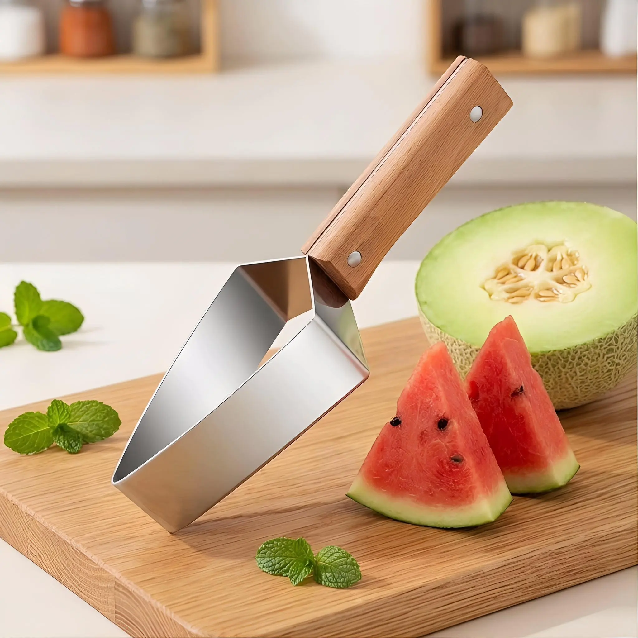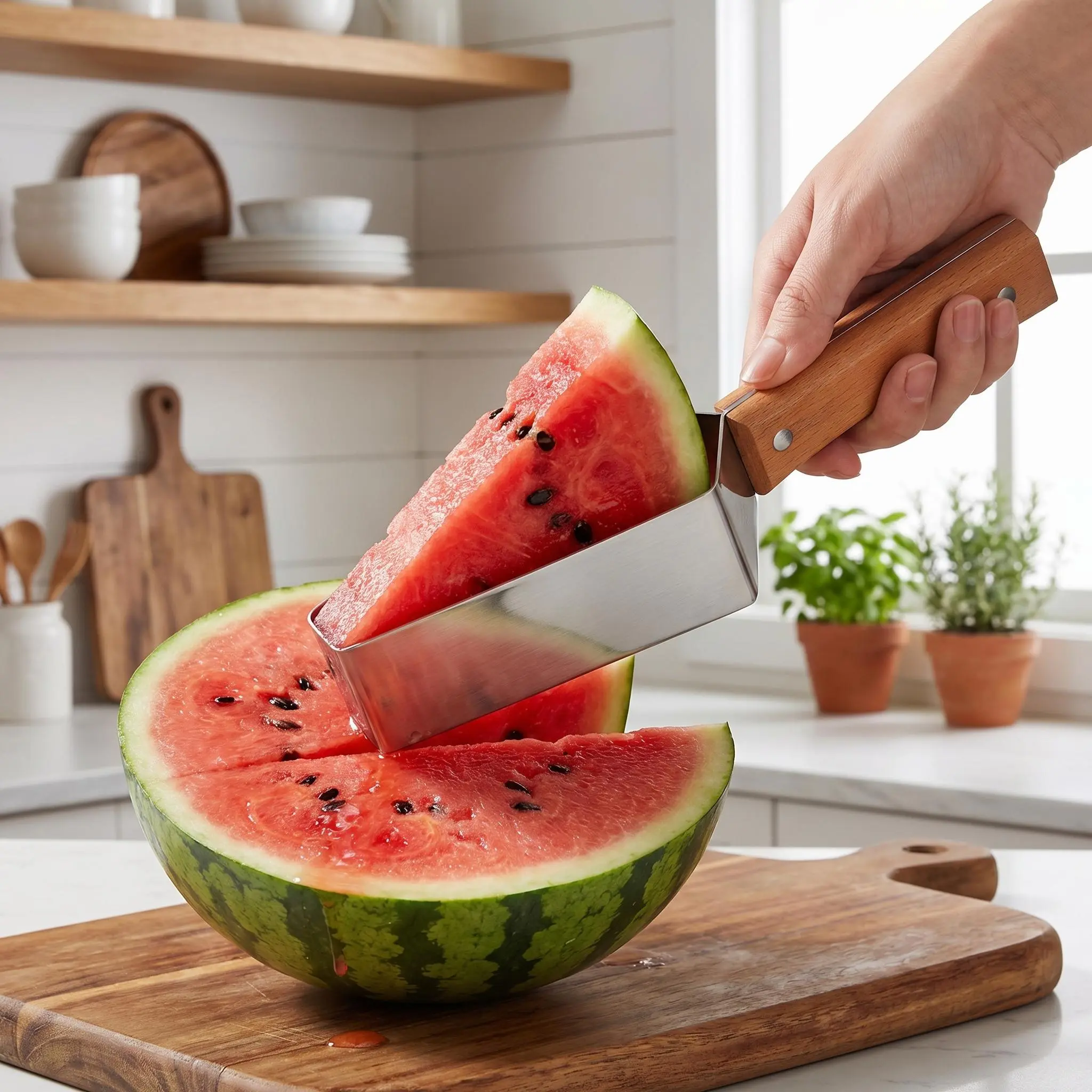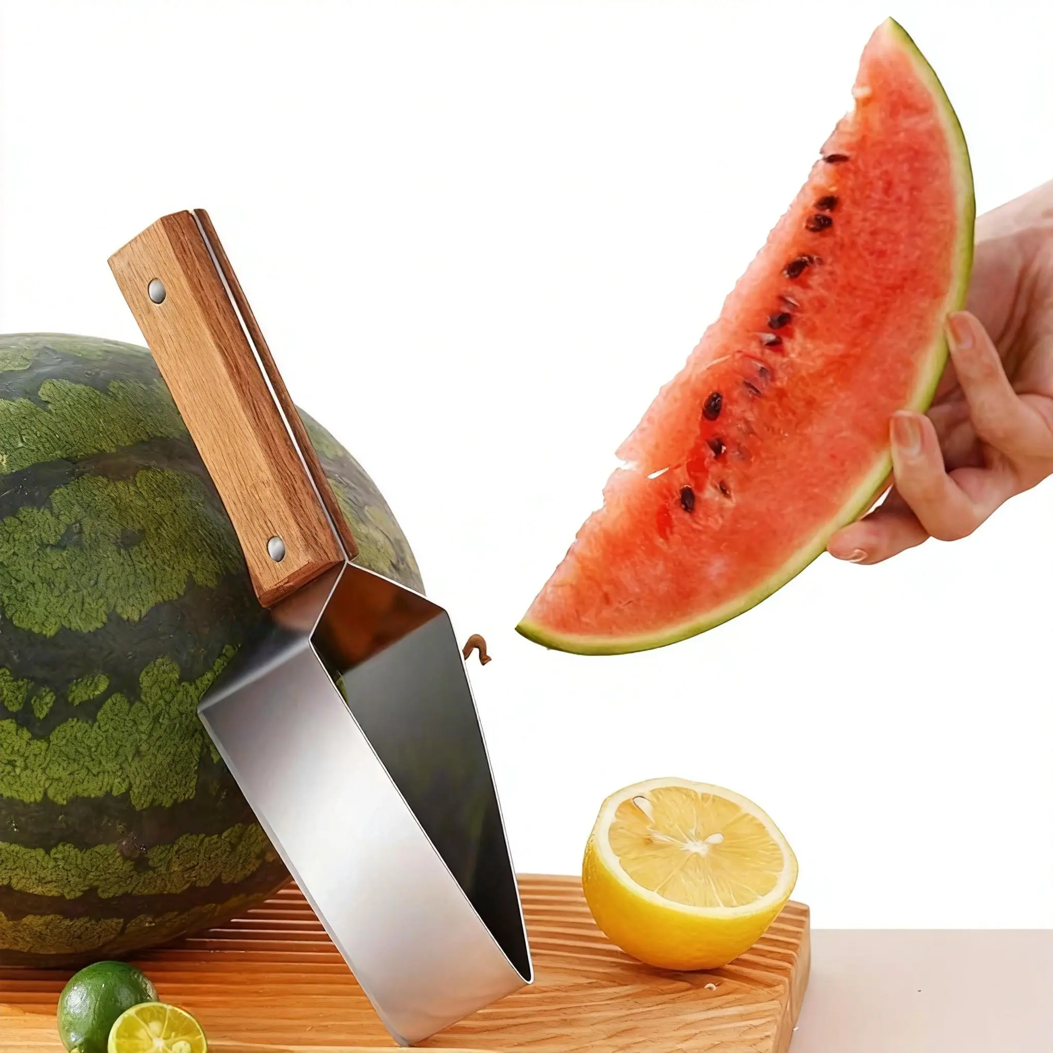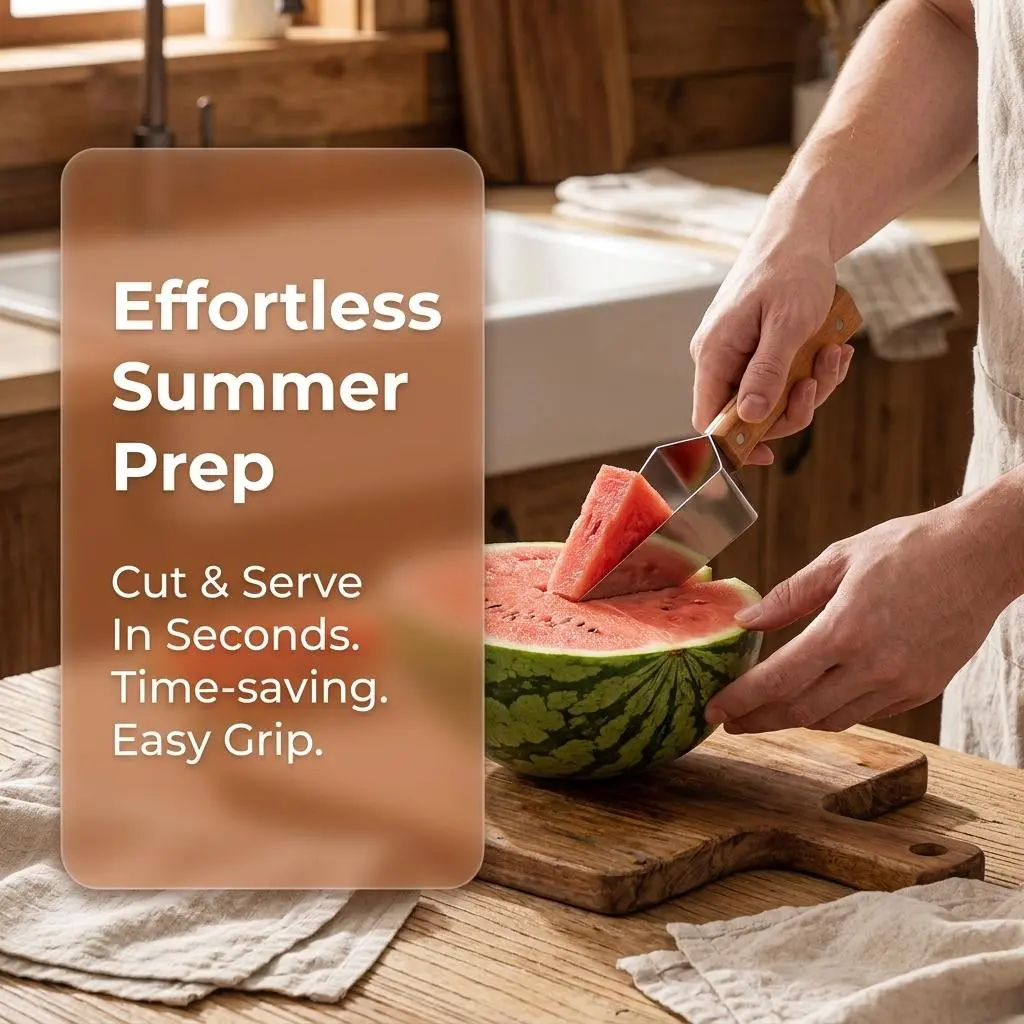 Make fruit prepping faster and cleaner with our 304 Stainless Steel Watermelon Slicer. Designed for those who love fresh fruit but dislike the messy cleanup, this tool allows you to slice, cube, and serve watermelon in seconds. The unique triangular head glides through the fruit with minimal resistance, delivering uniform pieces every time. Whether you're preparing a healthy snack for the kids or a large fruit platter for a backyard BBQ, this durable slicer is your go-to kitchen companion.