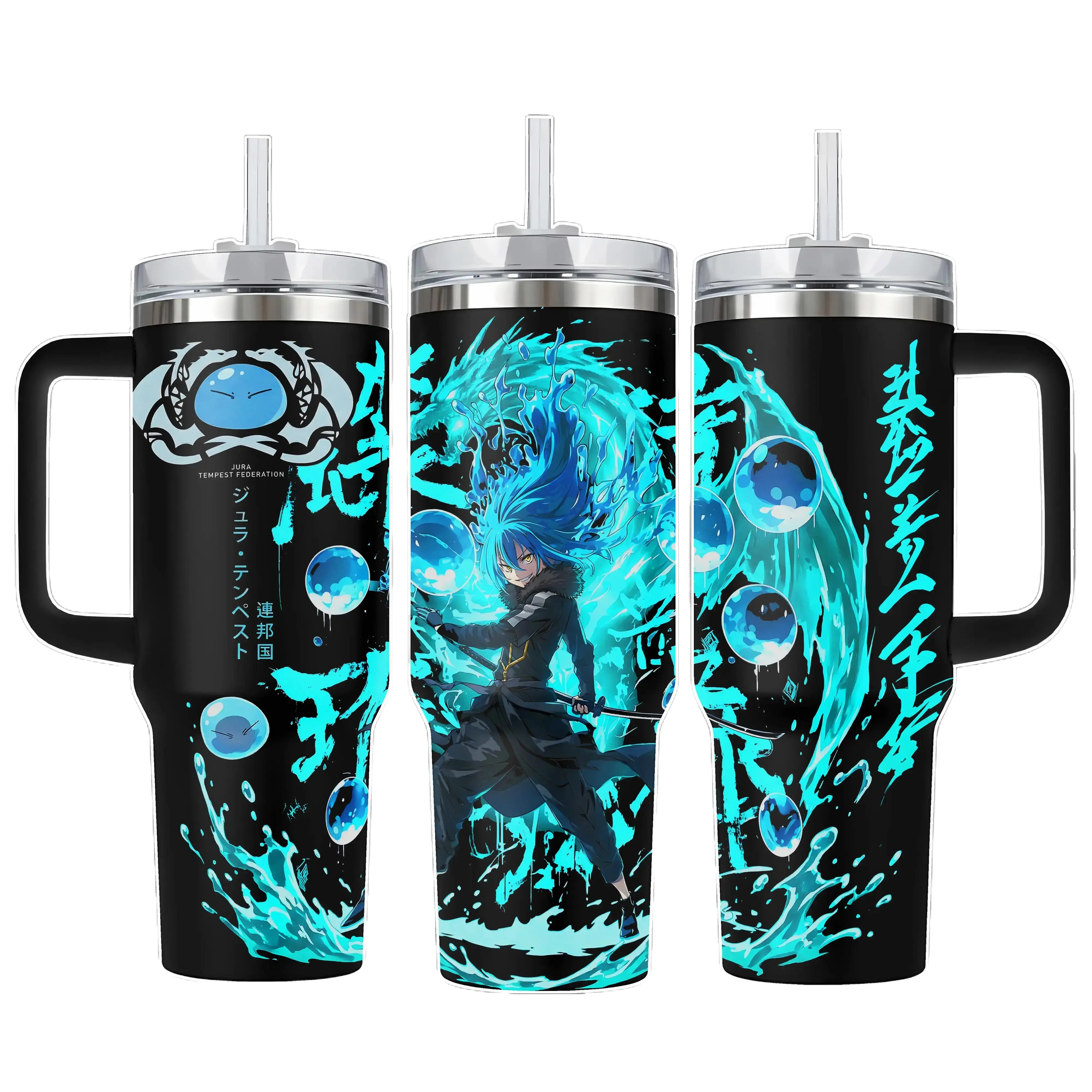 Rimuru Tempest Slime King Anime Tumbler With Handle, Blue Aura Water Spirit Cup, 20oz 40oz Insulated Travel Mug With Straw Lid